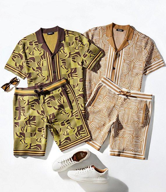 From Murano's Crocodile World Collection, this shirt features:Block pattern with jacquard fabricNotch collarShort sleevesButton-front closureRayon/nylon blend Machine wash/tumble dryBandana gift with purchaseImported.*Also available in boys' sizing.