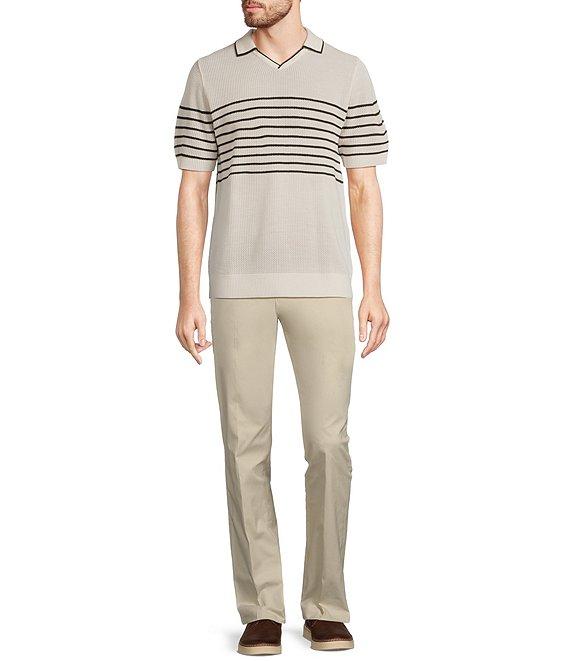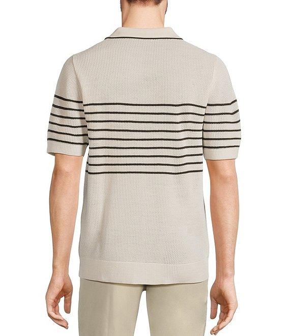 Murano Striped Johnny Collar Short Sleeve Sweater Knit Polo Shirt