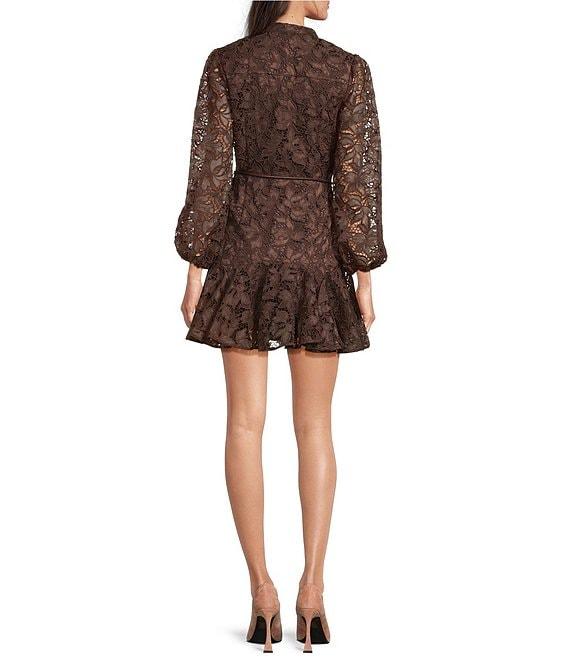 From Muse by Marchesa, this dress features: Embroidered organza fabrication A-line silhouette V-neckline Long sleeve Faux leather belt Side zip closure Lined Approx. 34.5" in length Polyester Dry clean Imported.