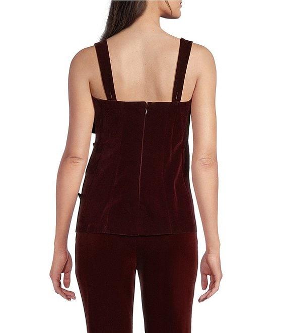From Muse by Marchesa, this top features: Velvet fabrication Vest silhouette Square neckline Sleeveless Front button-up detail 2 front pockets Center back invisible zipper with hook and eye closure Lined Approx. 15.38" in length Polyester Dry clean Imported.