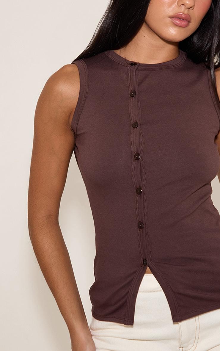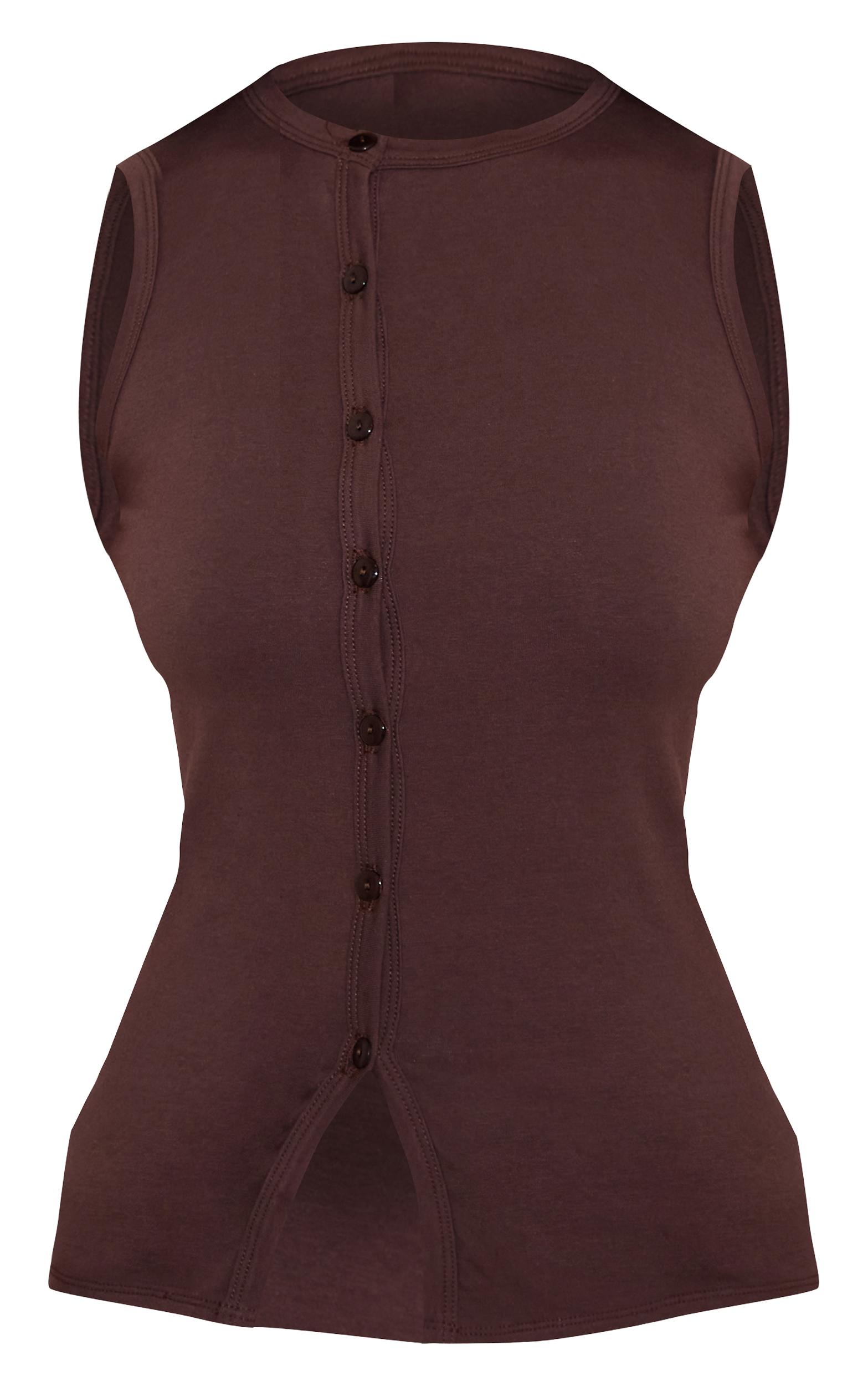 For elevated everyday dressing, look no further than the mushroom cotton asymmetric button down top. This sleek, sleeveless design boasts a classic round neckline and a striking asymmetric button fastening that splits subtly at the hem, creating a contemporary edge. Pair it with relaxed tailored pants and mules for a polished day aesthetic, or keep it cool with high-waisted denim and sneakers for an off-duty vibe that’s effortlessly chic.Length approx 48.5cm/19inch (Based on sample size US 4)Model wears size UK 8/ EU 36/ AUS 8/ US 4Model Height - 5ft 7inchp]:!mb-4inch>Category: TopsProduct type: Fitted T-ShirtColor: MushroomMaterial: Cotton JerseyDesign: PlainNeckline: CrewSleeves: SleevelessOccasion: Day