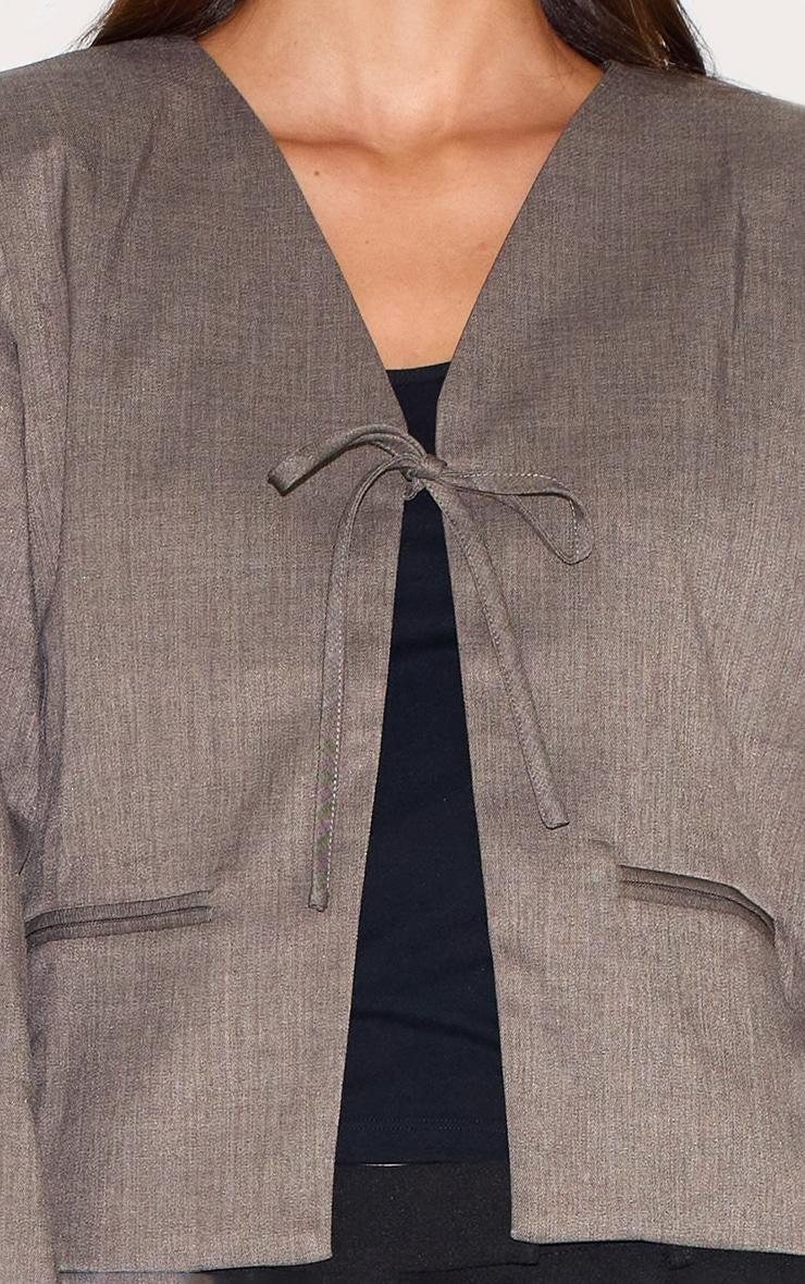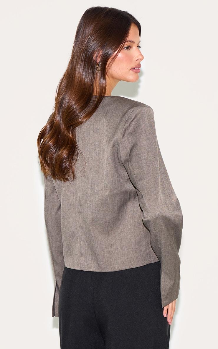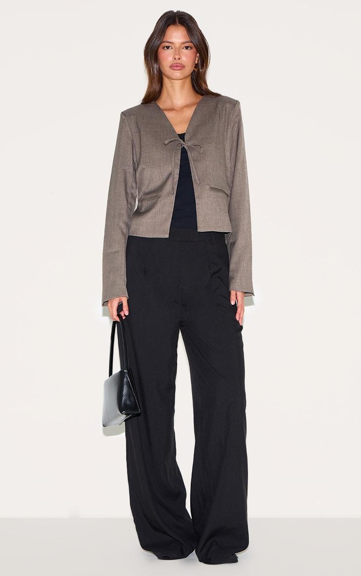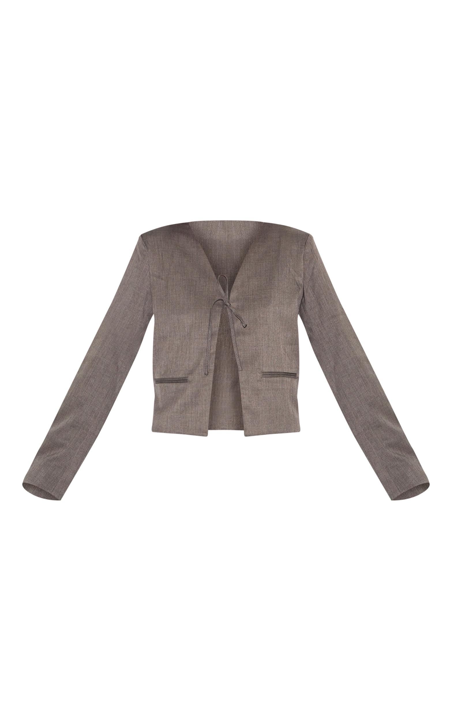 Tailored from mushroom hue material, this blazer has a tie front fastening, faux pocket embellishment, structured shoulders and long sleeves. Elevate your formal look by layering this mushroom tie up boxy blazer over a black cami, tailored wide leg pants, a classic black shoulder bag and strappy stiletto heels.Length approx 48.5cm/19inch (Based on sample size US 4)Model wears size UK 8/ EU 36/ AUS 8/ US 4Model Height - 5ft 7inchp]:!mb-4inch>Brand: PrettyLittleThingCategory: OuterwearProduct type: Fitted BlazerColor: MushroomMaterial: Tailored WovenOccasion: Day
