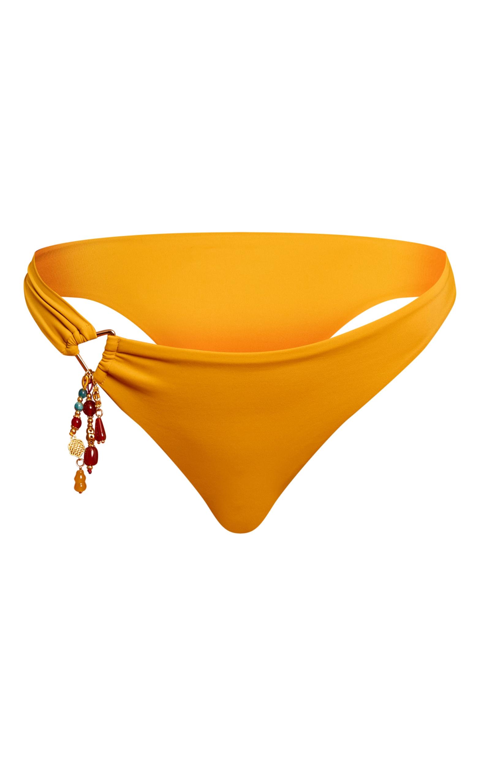 Keep it bold with the mustard charm trim Brazilian bikini bottoms. Made from a mustard stretch material, these Brazilian-cut bottoms are detailed with charm accents for a touch of glam. Match with the bandeau or triangle top for poolside perfection.Length approx 29cm/11.5inch (Based on sample size US 4)Model wears size UK 8/ EU 36/ AUS 8/ US 4Model Height - 5ft 7inchp]:!mb-4inch>Brand: PrettyLittleThingCategory: SwimwearProduct type: Brazilian Bikini BottomColor: MustardMaterial: SwimOccasion: Day