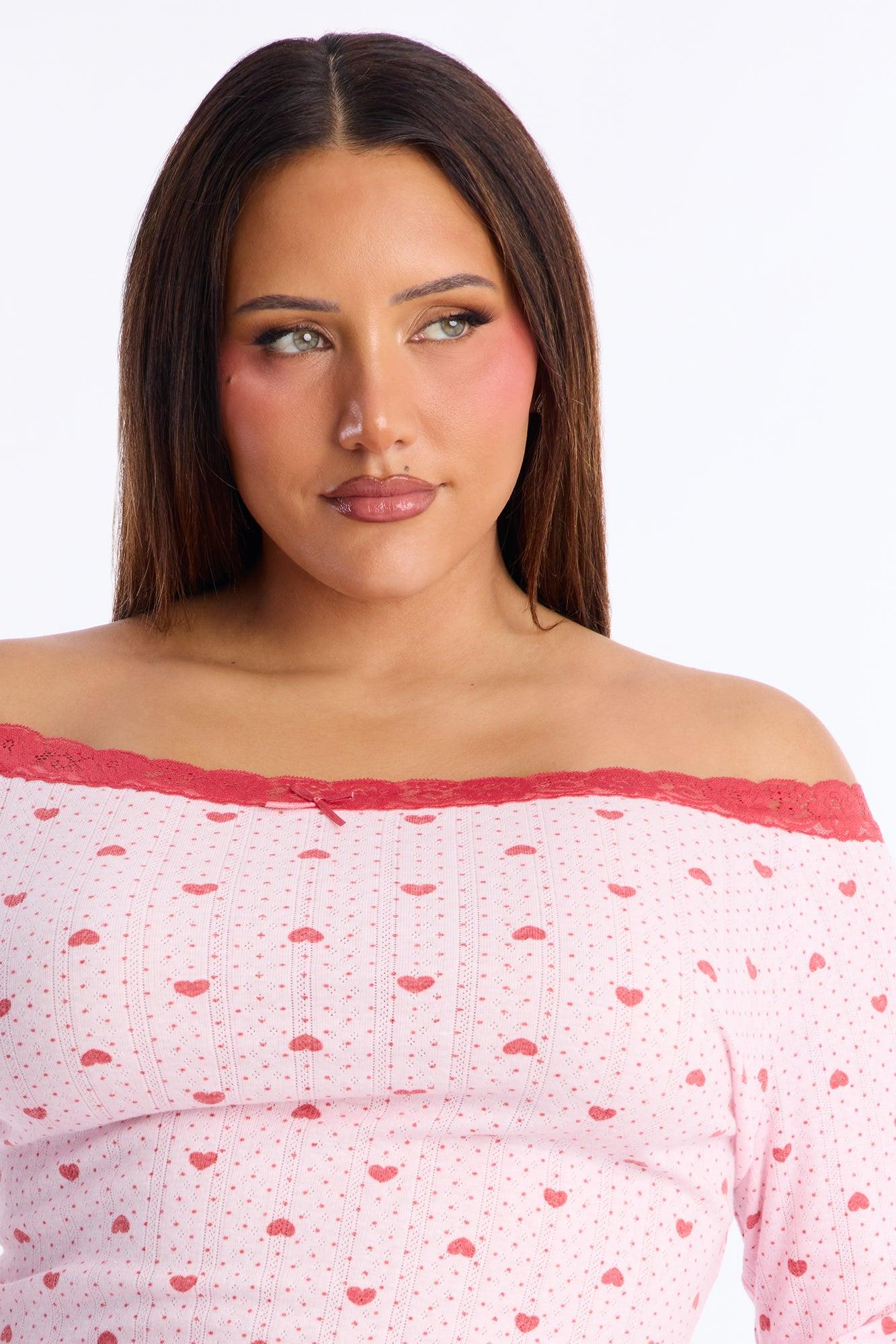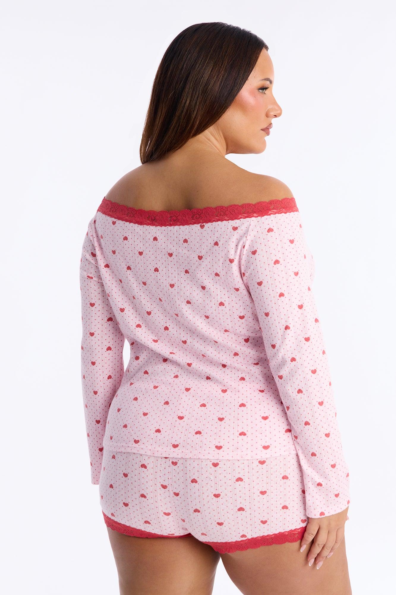 My Heart Is Yours Pointelle Off Shoulder PJ Short Set - Pink/combo Female