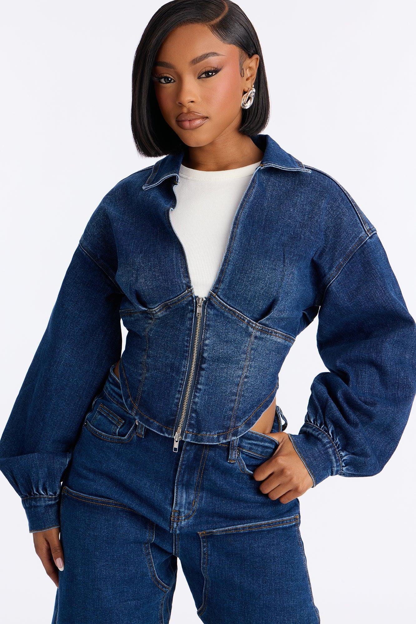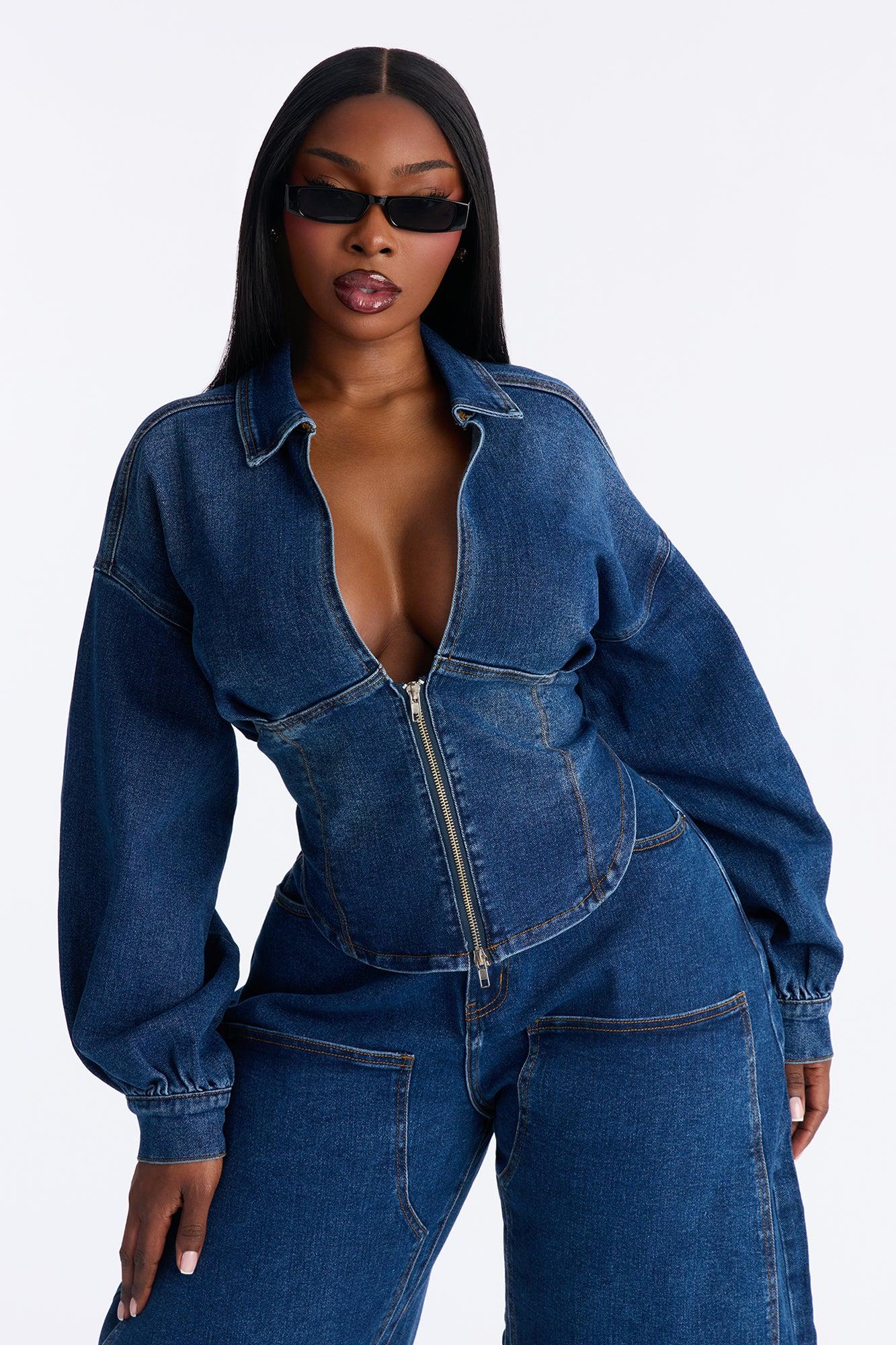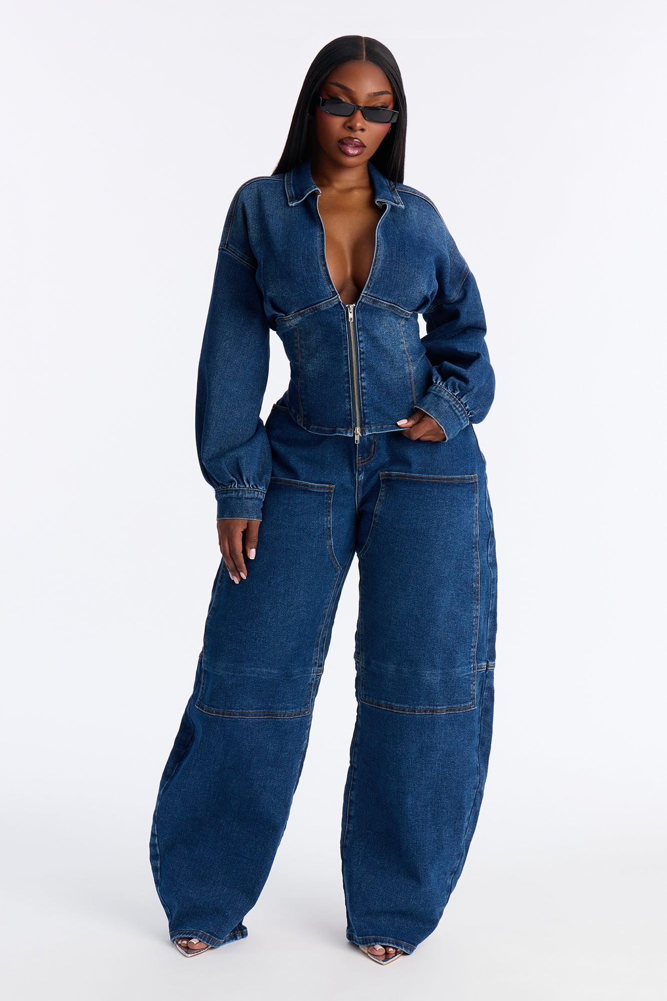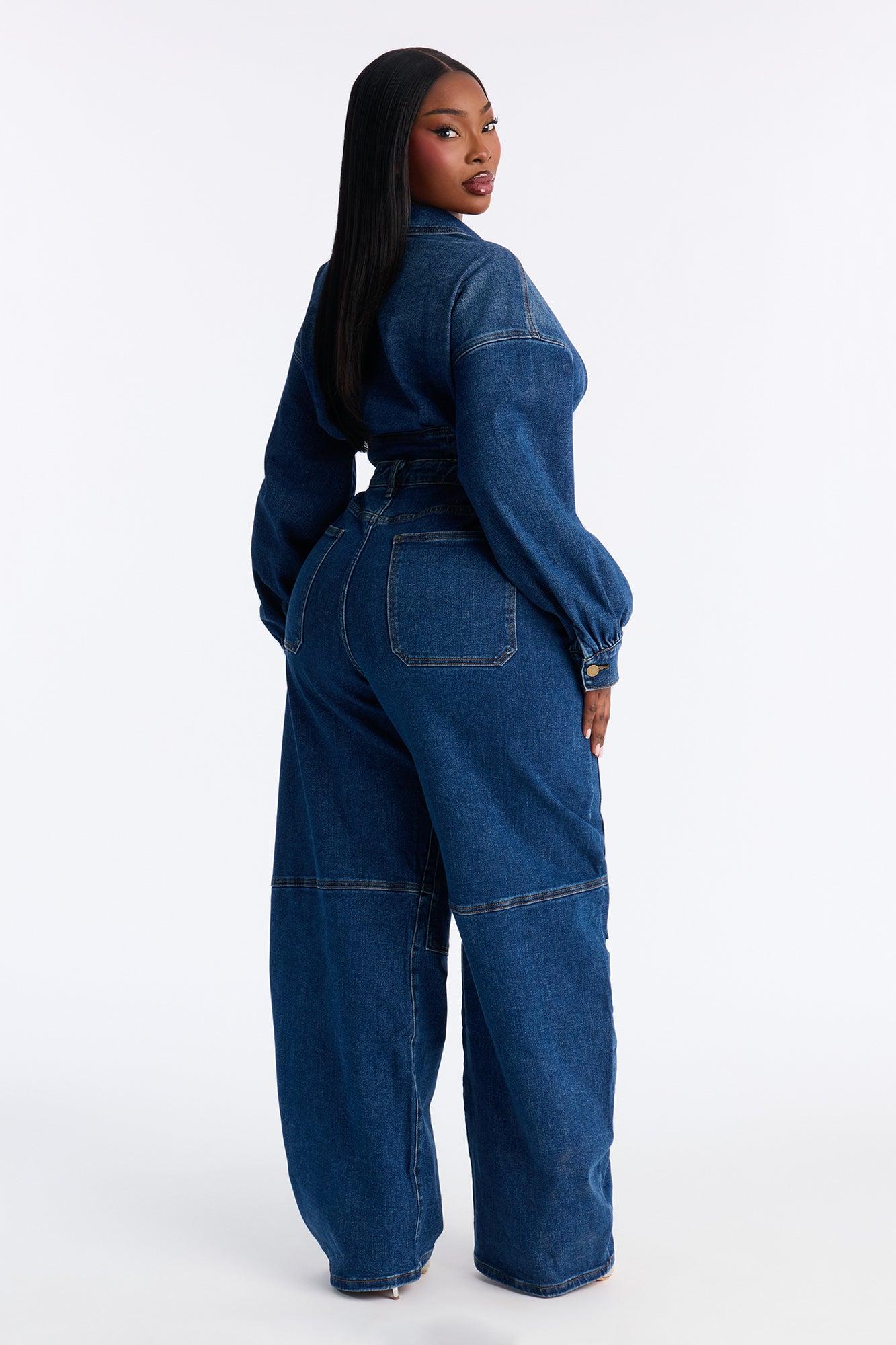 My Way Denim Barrel Pant Set - Dark Wash Female