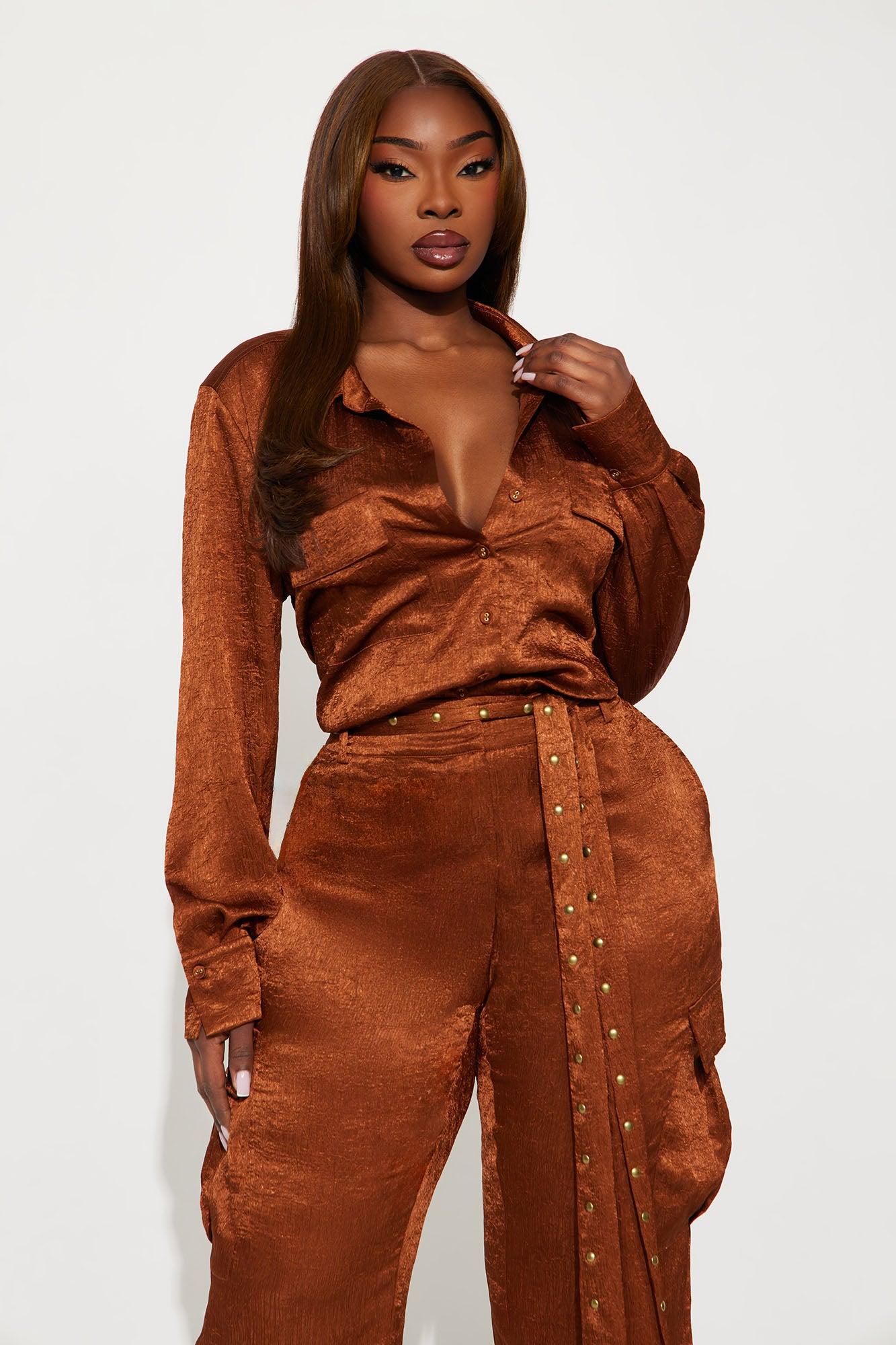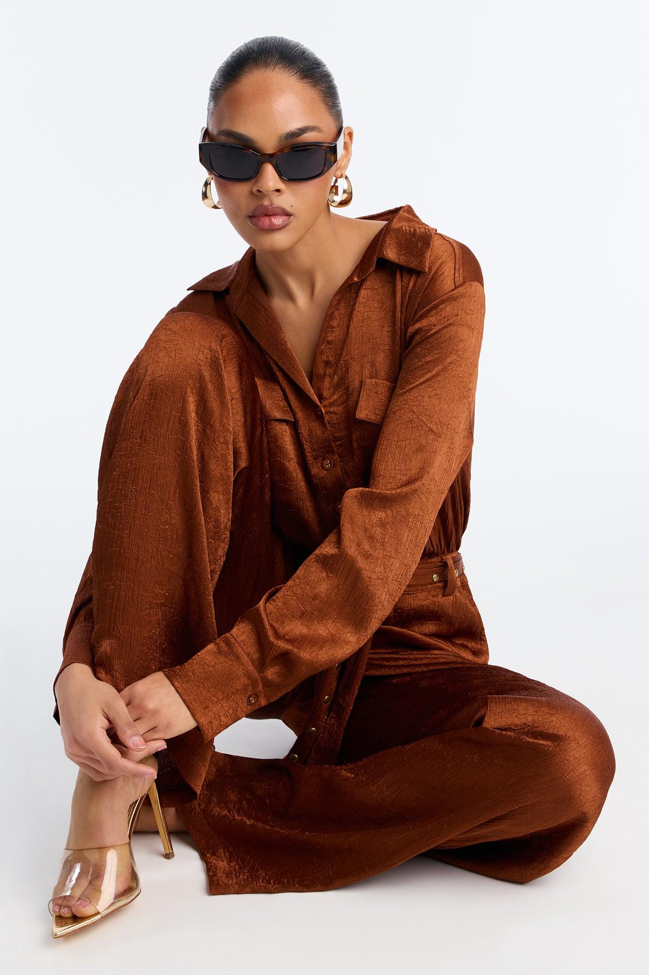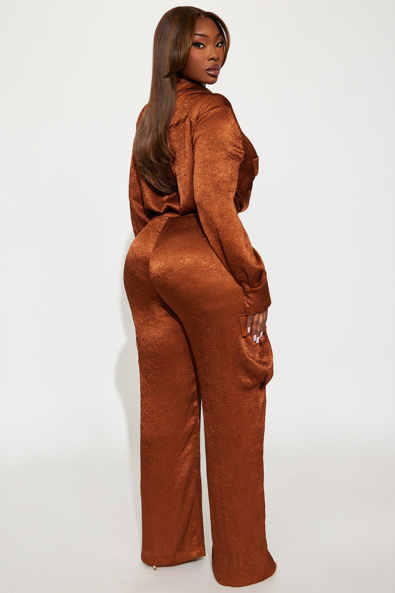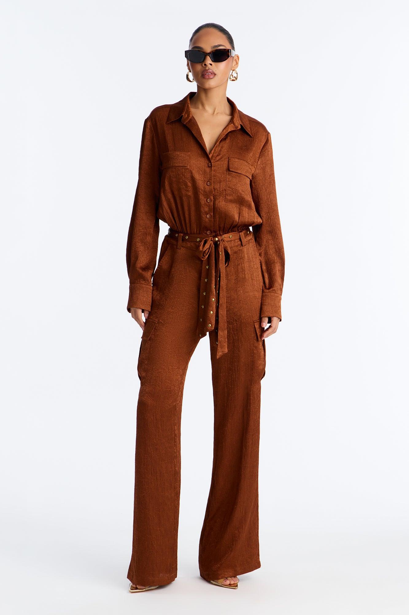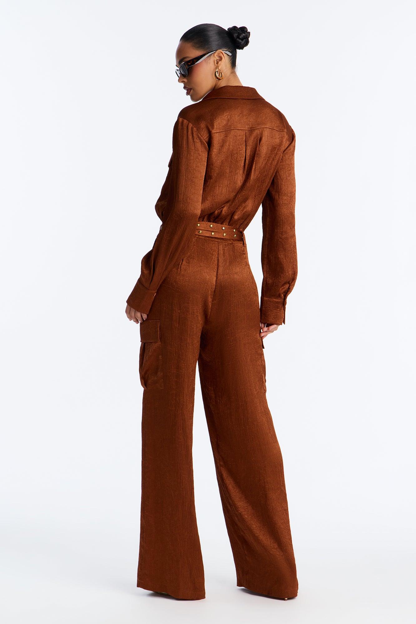 Myla Satin Cargo Jumpsuit - Bronze Female