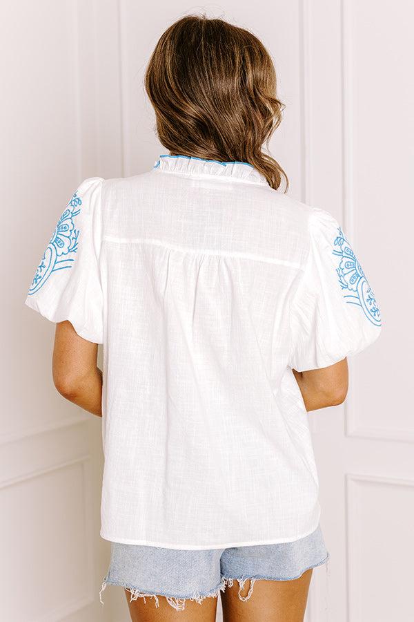 - Bring some charm to your wardrobe with this cute embroidered top. The sweetest ruffles and puff sleeves add the perfect touch of fun.