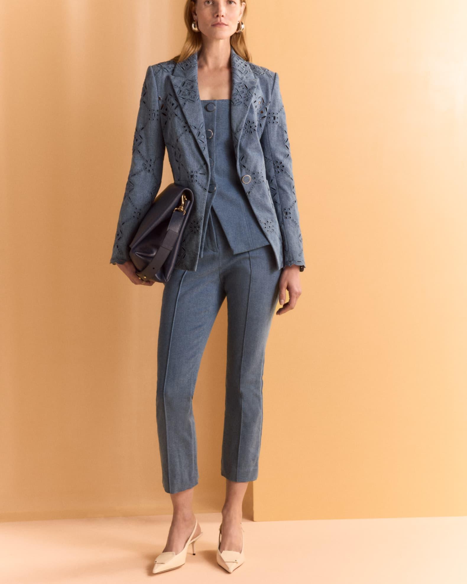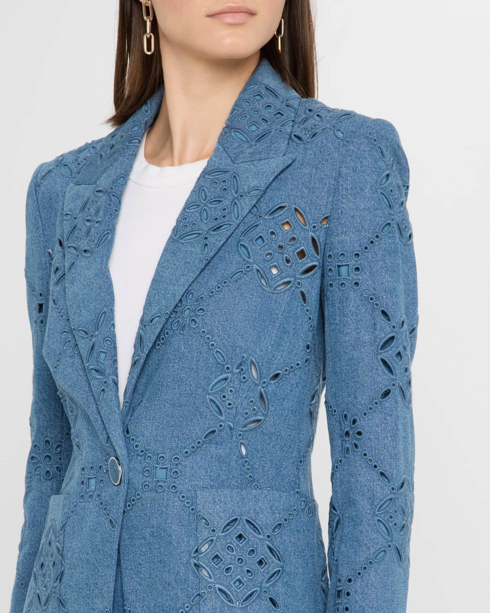 Naira Single-Button Eyelet Denim Jacket