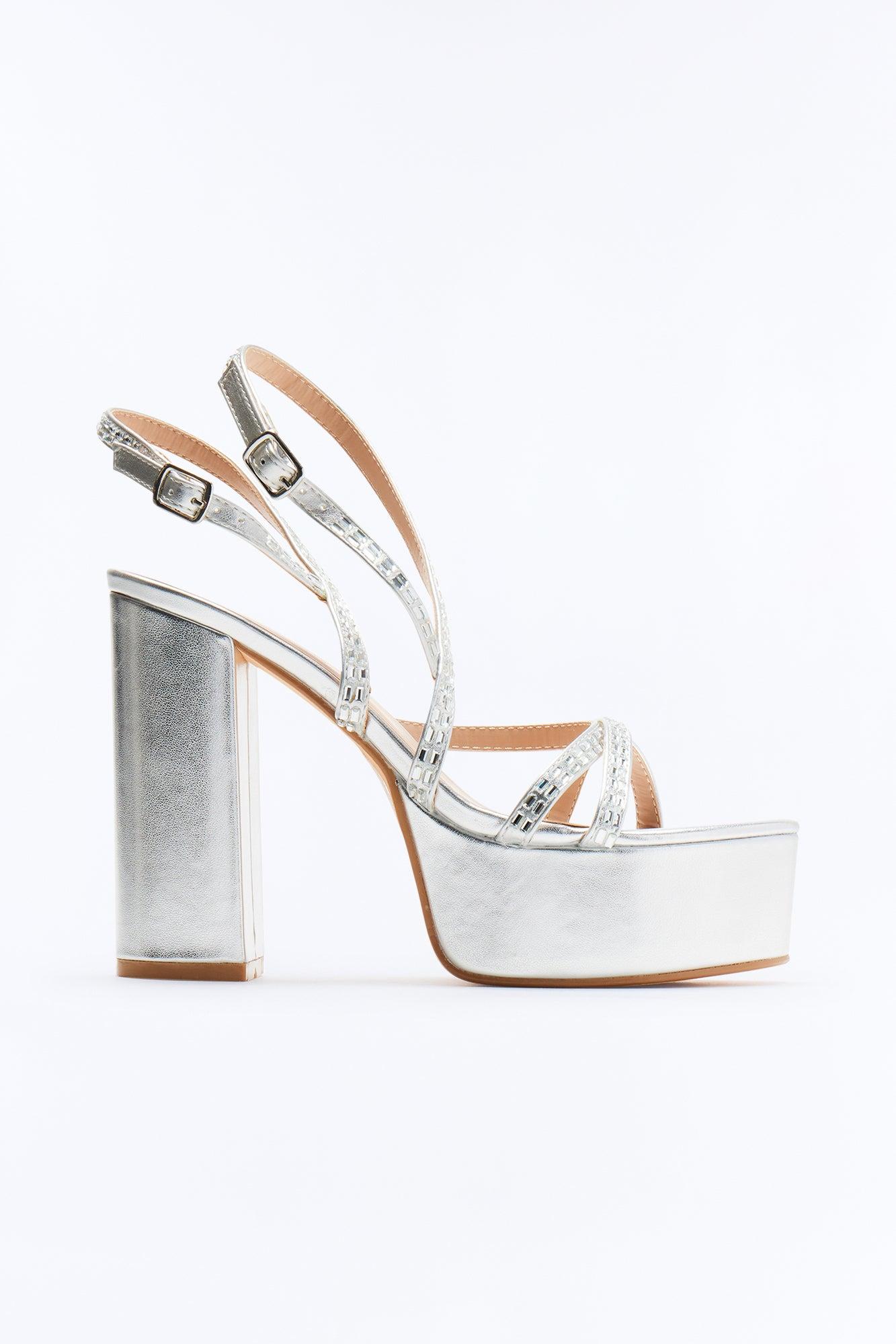 Nalu Strap Platform Heels - Silver Female