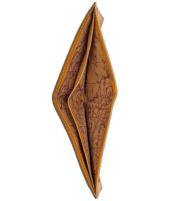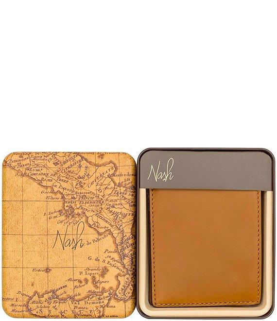 From Nash, this wallet features: (2) x separated bill compartments (4) x credit card slots (2) x multi-function pockets (1) x ID window Signature map-print faille lining Burned-edge finish Heavy, handcrafted stitching Includes RIFD-blocking protection box 4 1/2 wide x 3 1/2 tall x 1/2" deep Full-grain leather Imported.