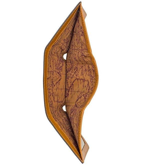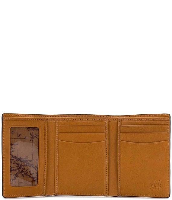 From Nash, this billfold features: (1) x billfold compartment (6) x credit card slots (2) x multi-function pockets (1) x ID window Signature map-print faille lining Burned-edge finish Heavy, handcrafted stitching Includes RIFD-blocking protection box 3 1/2" wide x 4 3/8" tall x 3/4" deep Full-grain leather Imported.