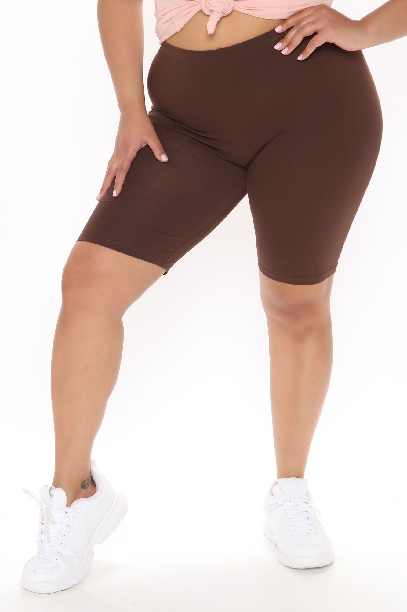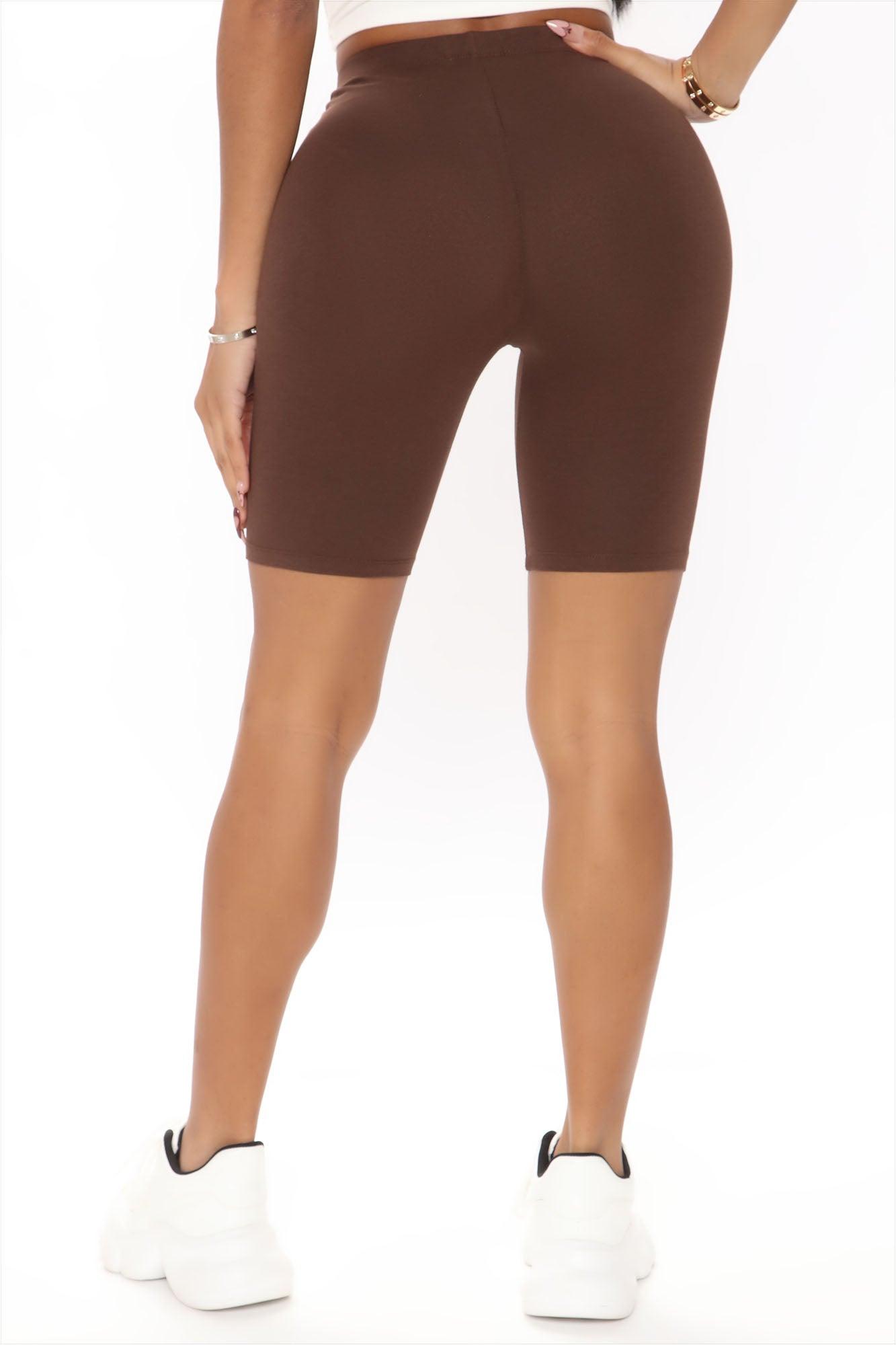 Available In Black, Chocolate, Grey, Mustard, Navy, Red, Royal And White. Cotton/Span Fabric High Rise Stretch Fabric Classic Biker Short 8 inseam. Based on a size Small 97% Cotton 3% Spandex Imported