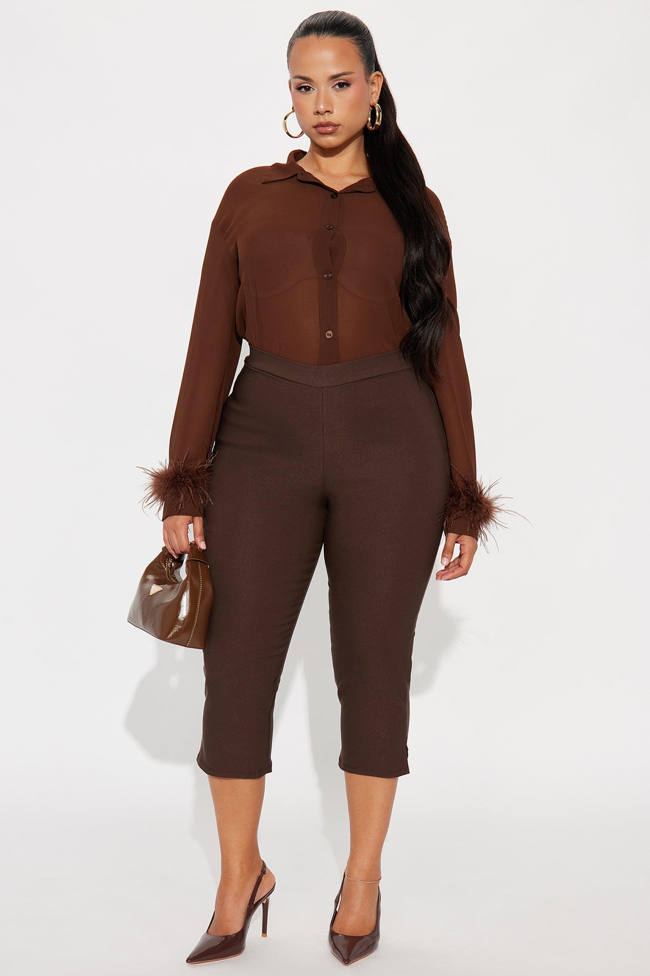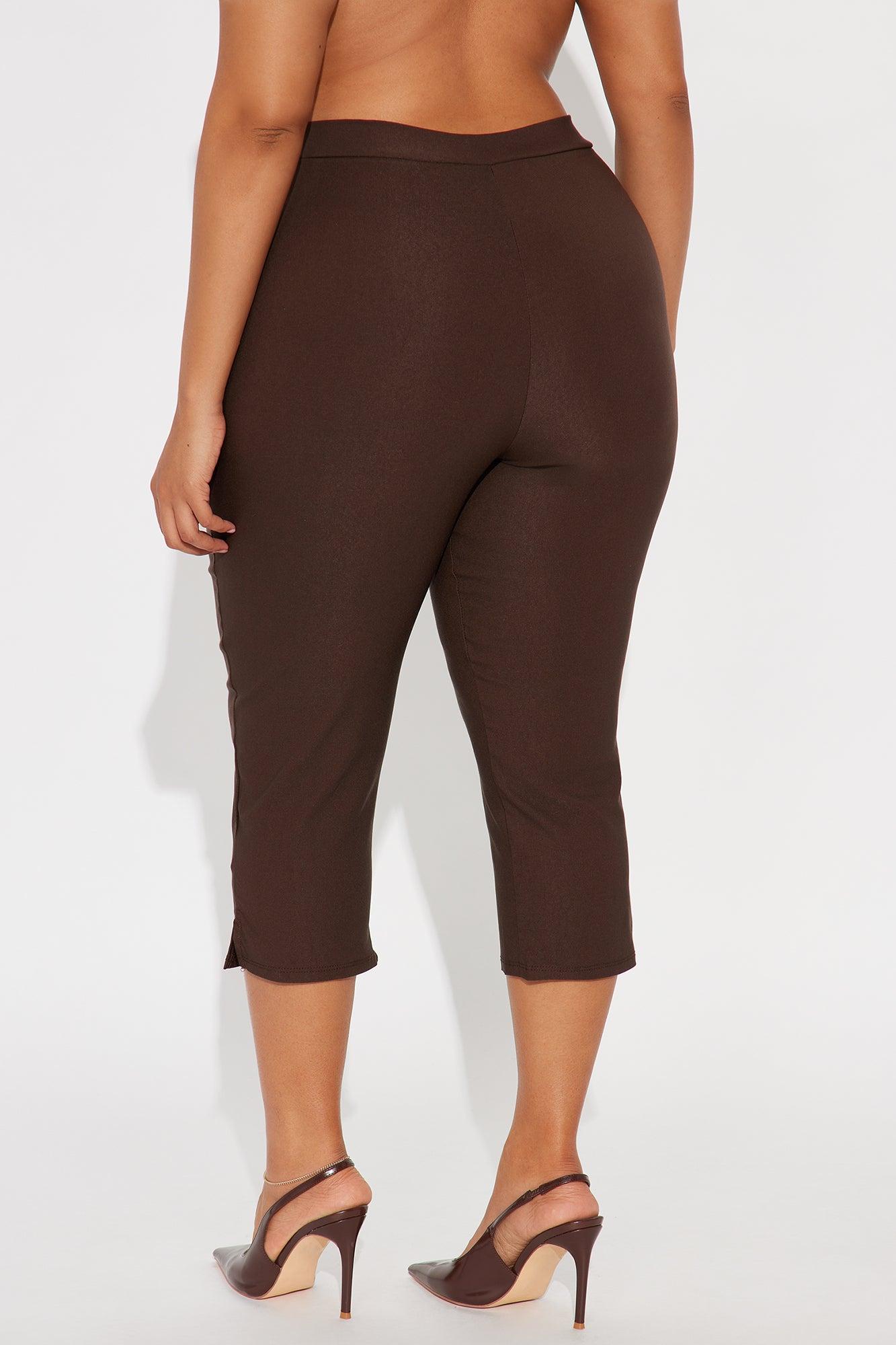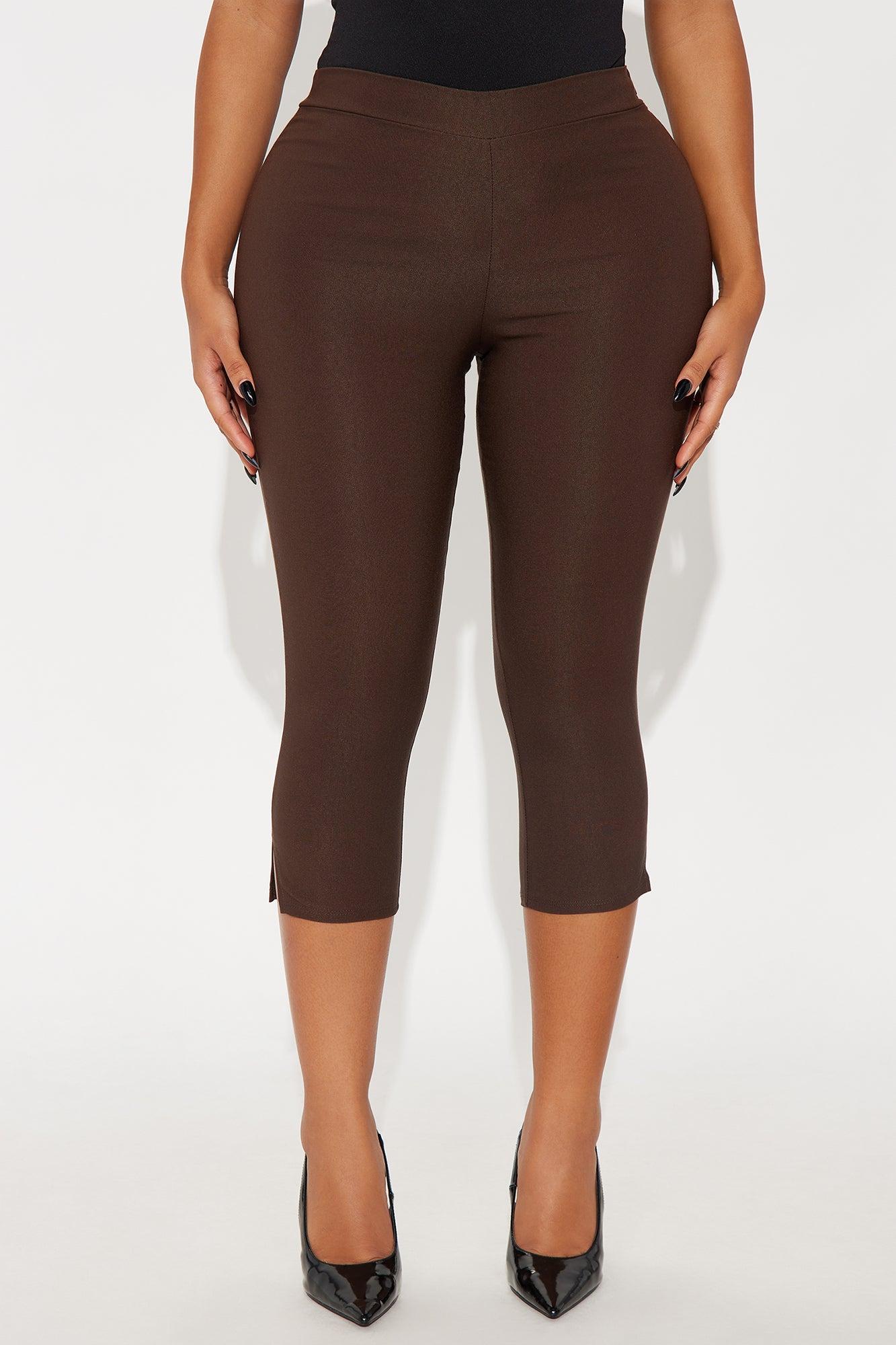 Available In Black, Burgundy, Chocolate, Navy And Olive. Skinny Capri Pant Side Zip Closure High Rise Millennium 20" Inseam Stretch Self : 74% Rayon 22% Nylon 4% Spandex Imported California Proposition 65WARNING: Cancer and Reproductive Harm - www.P65Warnings.ca.gov.