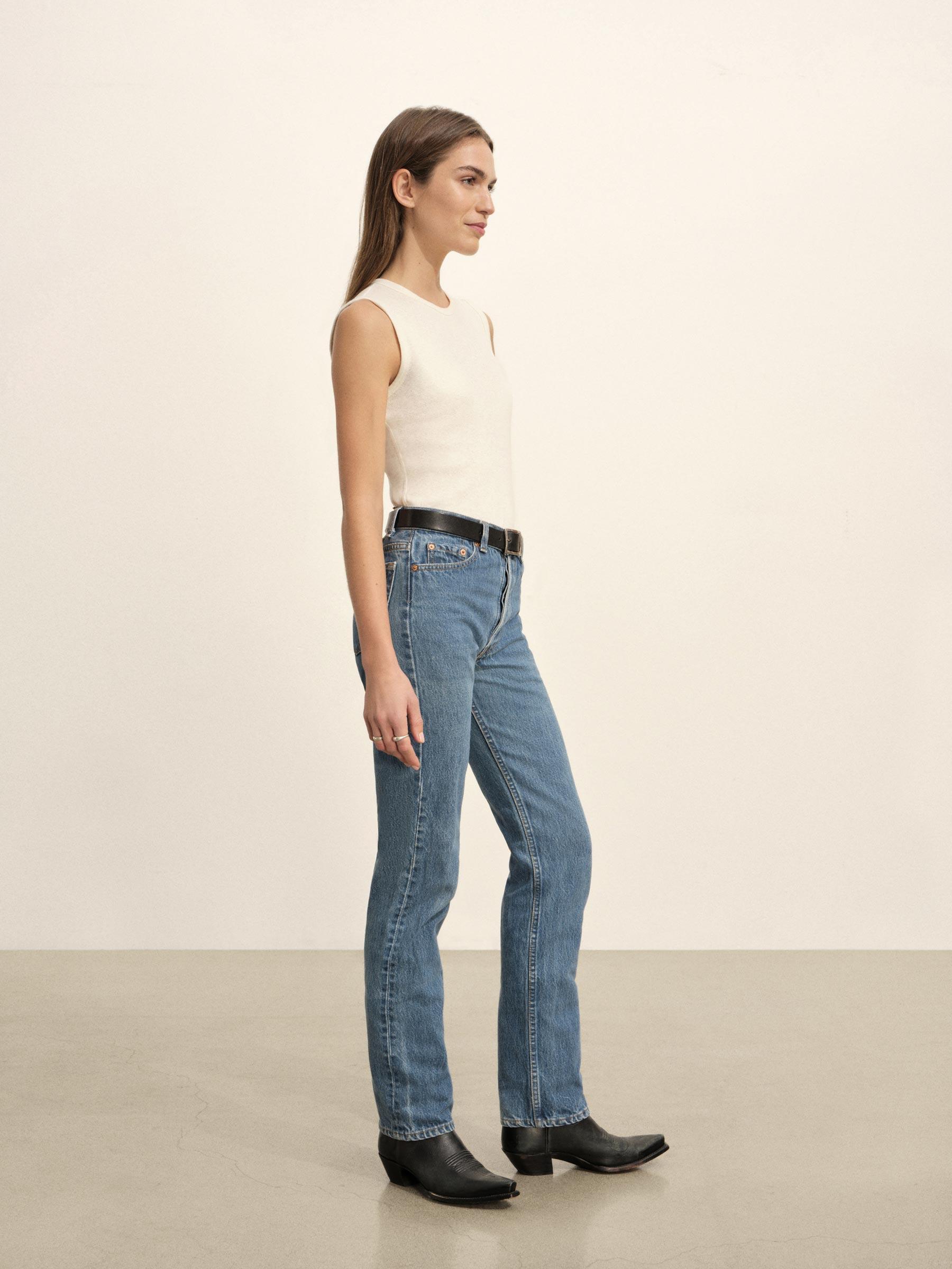 Slim-fit, vintage-inspired muscle tank made from a textured blend of 60% recycled cotton and 40% cotton.