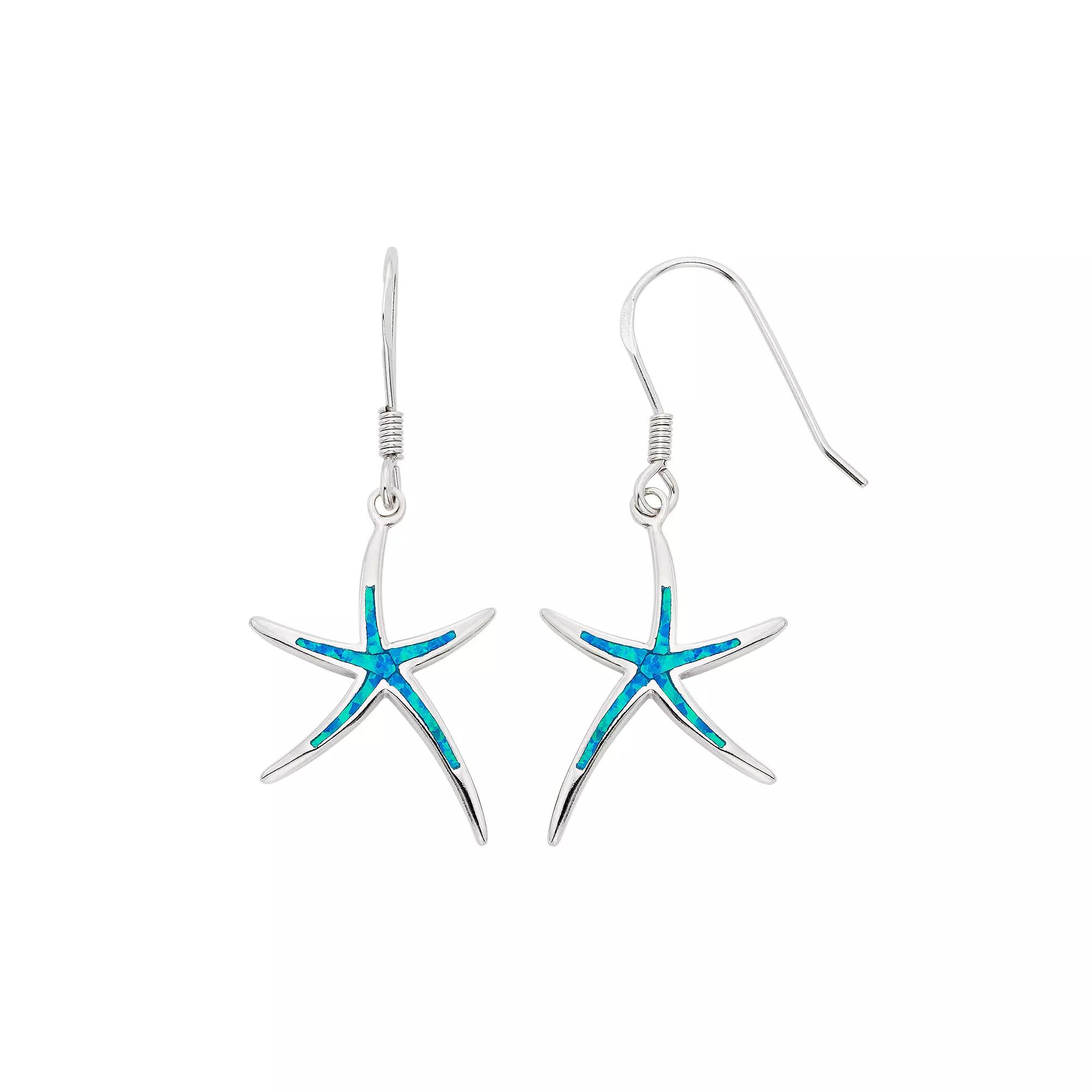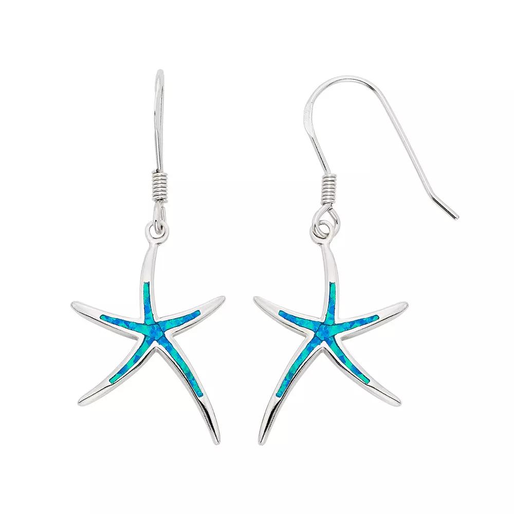 Add a whimsical touch to your ensemble when you wear these lab-created blue opal starfish drop earrings. Comes in a gift box. Click on this JEWELRY & WATCHES GUIDE to learn about fit, styles, materials and more! - https://www.kohls.com/feature/jewelry-guide.jsp. EARRING DETAILS. Length: 1.48 in. , Backings: fishhook, Metal: rhodium-plated sterling silver. STONE DETAILS. Stone type: lab-created blue opal, Setting: inlay. Size: One Size. Gender: female. Age Group: adult.