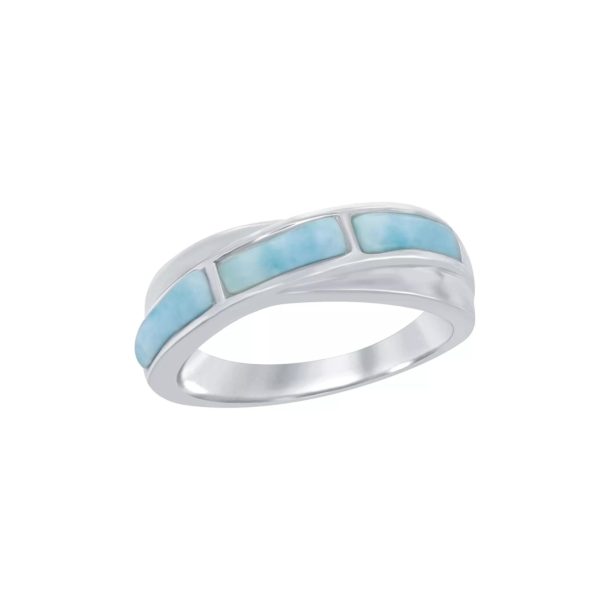 Larimar inlays lend fashionable flair to this sterling silver bypass ring.RING DETAILSWidth: 7 mmMetal: sterling silverAdditional details: larimar inlayPackaging: boxedGemstones may have been treated to enhance their appearance. Special care may be required. Color: Blue. Gender: female. Age Group: adult.