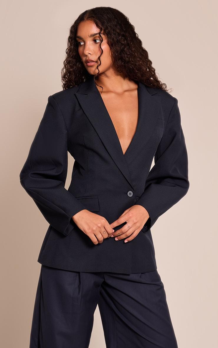 Make a statement in the navy asymmetric detail cocoon sleeve blazer. Constructed from a navy woven fabric, this blazer highlights asymmetric accents and voluminous cocoon sleeves for a directional take on tailoring. Pair with tailored pants and stilettos for a bold and modern finish. Length approx 48.5cm/19inch (Based on sample size US 4)Model wears size UK 8/ EU 36/ AUS 8/ US 4Model Height - 5ft 10inchp]:!mb-4inch>Brand: PrettyLittleThingCategory: OuterwearProduct type: Fitted BlazerColor: NavyMaterial: Tailored WovenOccasion: Day