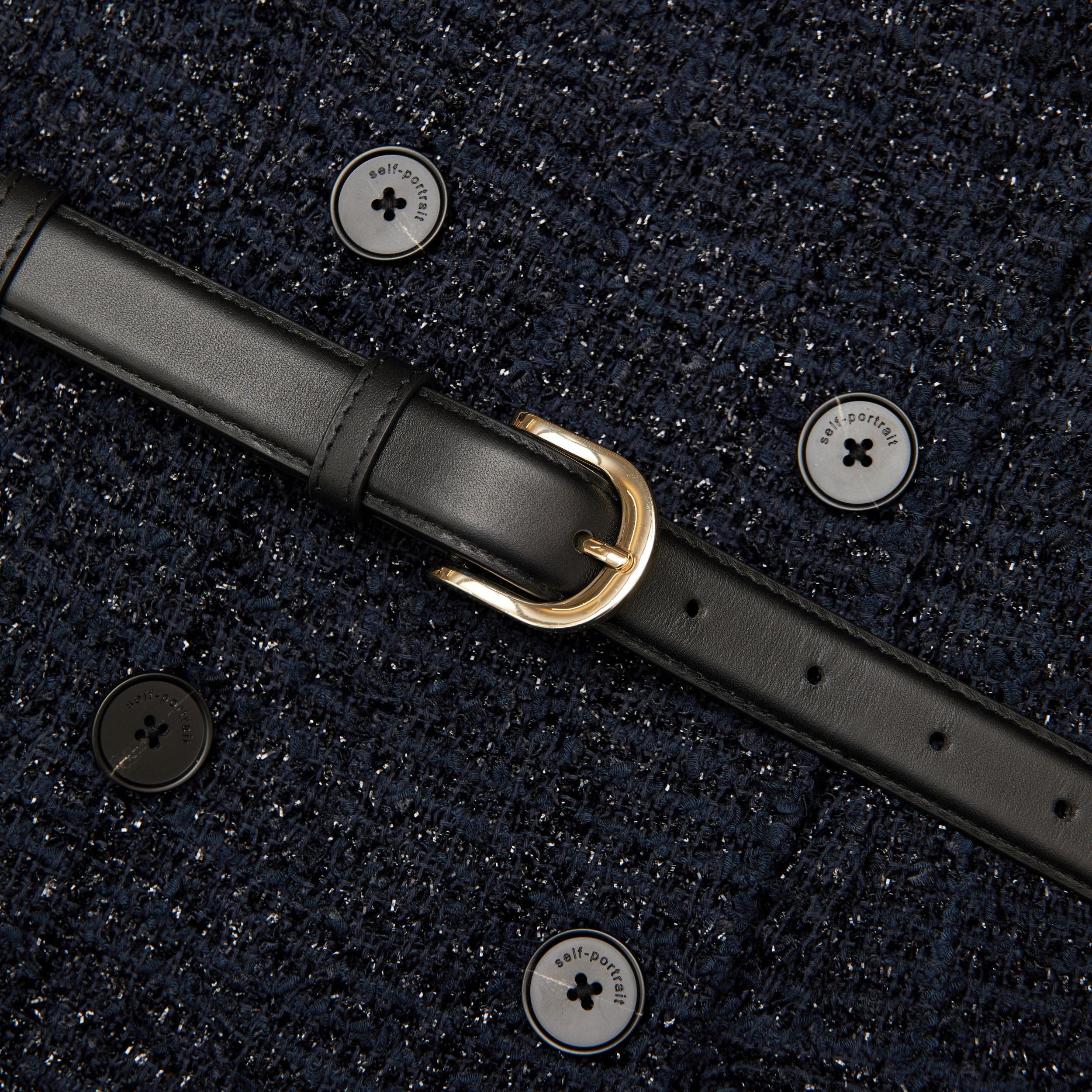Tailored to flatter, this double-breasted navy bouclé dress exudes refined elegance. An open neckline frames the figure above a sleek midi skirt — pair with heels for an invite-only occasion.Fitted styleThis style has minimal stretchButton closure down frontFunctional pocketsRemovable beltModel is 5ft10/178cm and wears a size UK 6