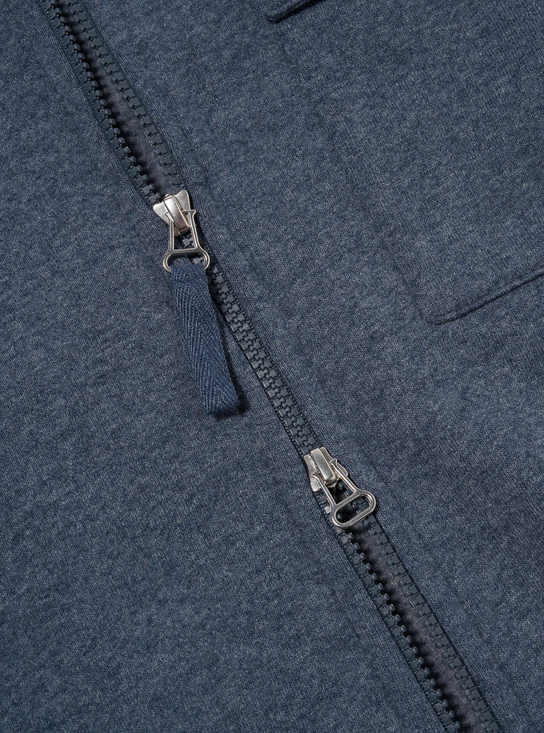 A zip-through jersey jacket with a sporty feel. The Tyler Jacket has a self-fabric collar, our signature two-way zip, a velcro patch pocket, and side seam pockets. Our model is 6' 0'' with a 38' Chest and is wearing a size 'Large.’ A recycled cotton and recycled polyester mix, Recycled Cotton Blend Jersey has a marl effect due to the mix of yarns. Smooth and clean on the outer and soft on the reverse, this is a comfortable mid-weight jersey perfect for layering on cooler summer days and evenings. • Relaxed fit. • Two-way zip. • Velcro patch pocket. • Two side seam pockets. • Ribbed cuffs and hem. • Fabric Content: 51% Recycled Cotton, 49% Recycled Polyester. • Washcare: Wash at 30 degrees. Do not bleach. Do not tumble dry. Cool iron. Do not dry clean. Wash like colours together. Do not iron decoration. • Please be aware that the measurements below are technical measurements that are based on the garment laid flat and are useful as a general guide only. Measured in Centimetres. XS S M L XL XXL XXXL Centre Back Length. 61.5 63.5 65.5 67.5 69.5 71.5 73.5 Chest Width - 2.5cm Below Armhole. 53.5 56 58.5 61 63.5 66 68.5 Sleeve Length - From Shoulder (inc. Cuff.) 59 60.5 62 63.5 65 66.5 68 Across Shoulders. 40.5 42.5 44.5 46.5 48.5 50.5 52.5