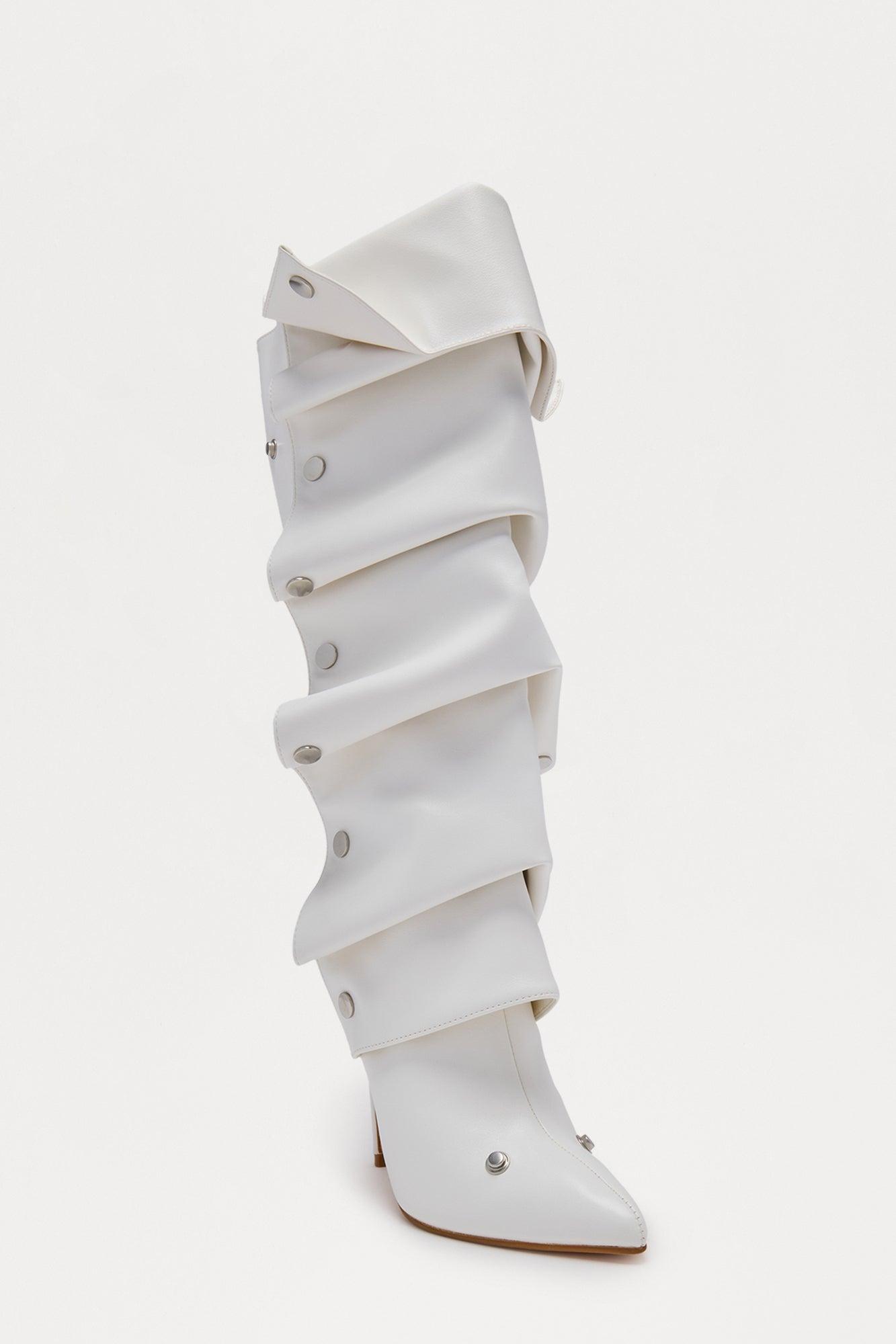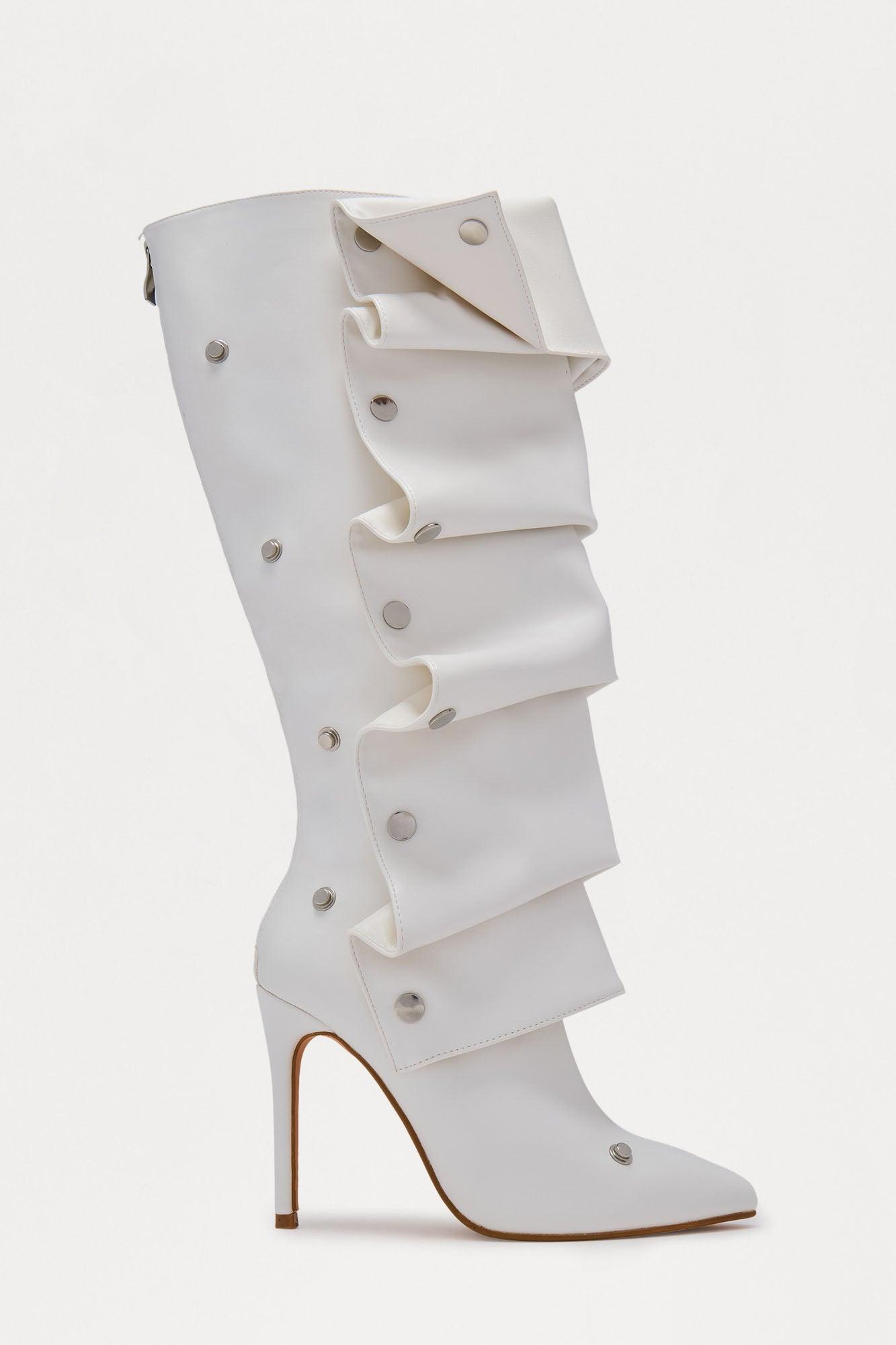 Nay Ruched Studded Boots - White Female