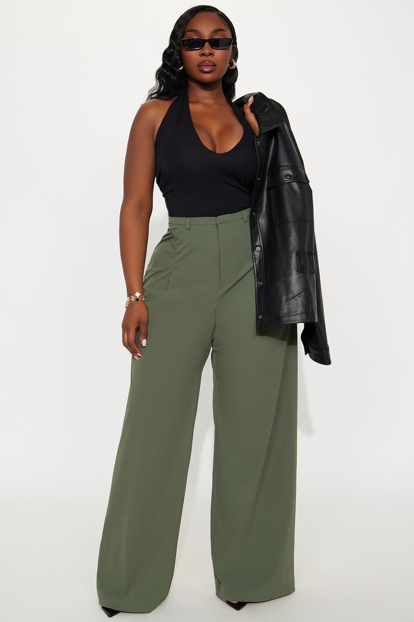 Naya Wide Leg Windbreaker Pant - Dark Olive Female