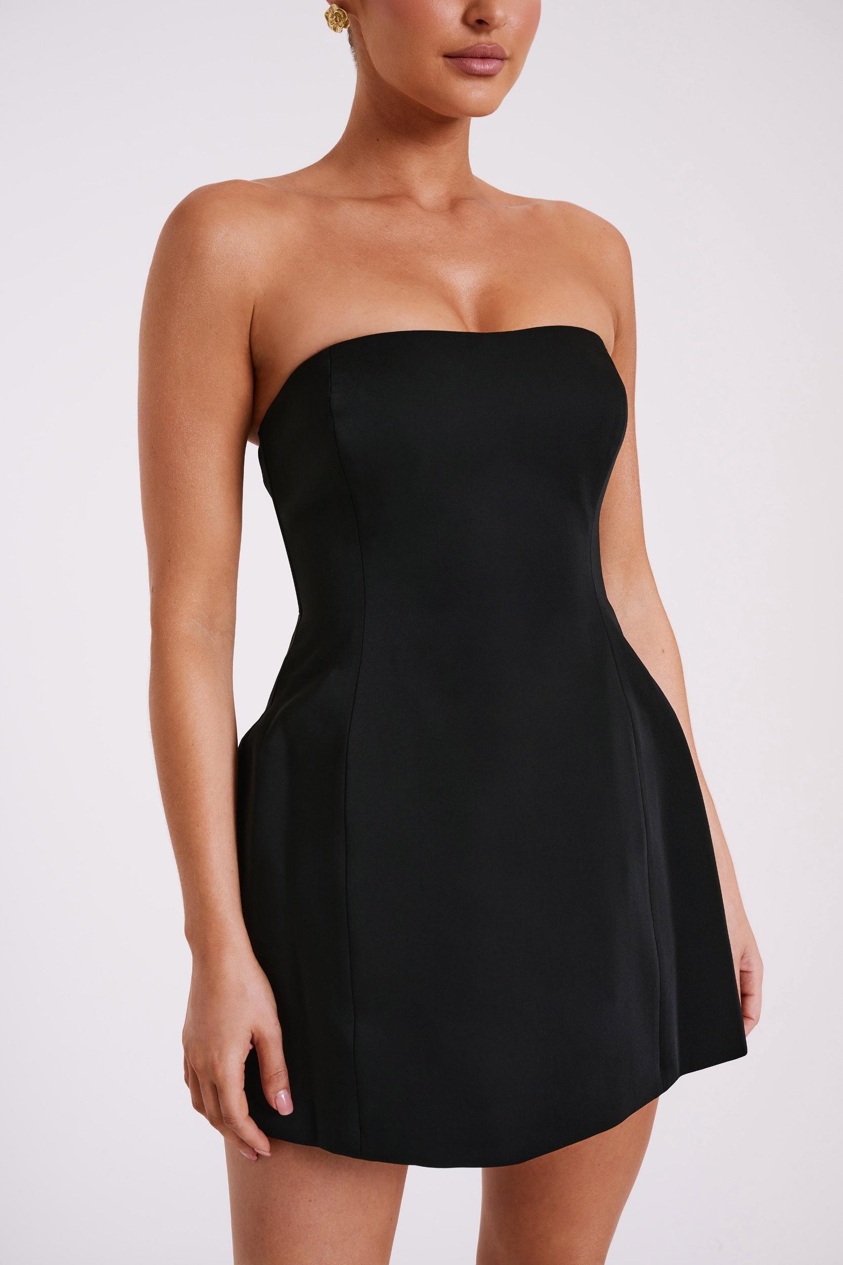 We recommend sizing up in this style. When the dress IS the party.The NEEKA is a strapless mini dress with a low sweetheart neckline and flared skirt. Three beautiful contrast bows are lined up at the centre back, adding visual texture and a touch of feminine charm. The back itself is low with a deep V-shaped neckline. Airy tulle underlayers add playful volume while the tucked waist accentuates a slender, curvy silhouette. Flatteringly feminine, NEEKA is the perfect blend of childish whimsy and classical charm. Complete the look with solid statement jewellery like Hilda Drop Earrings.