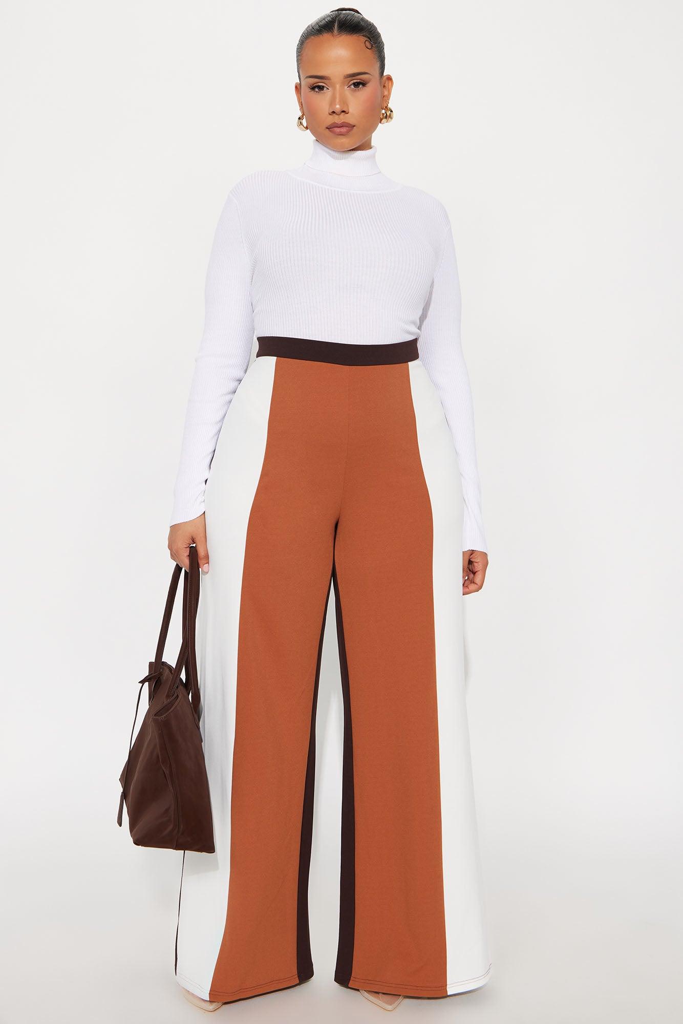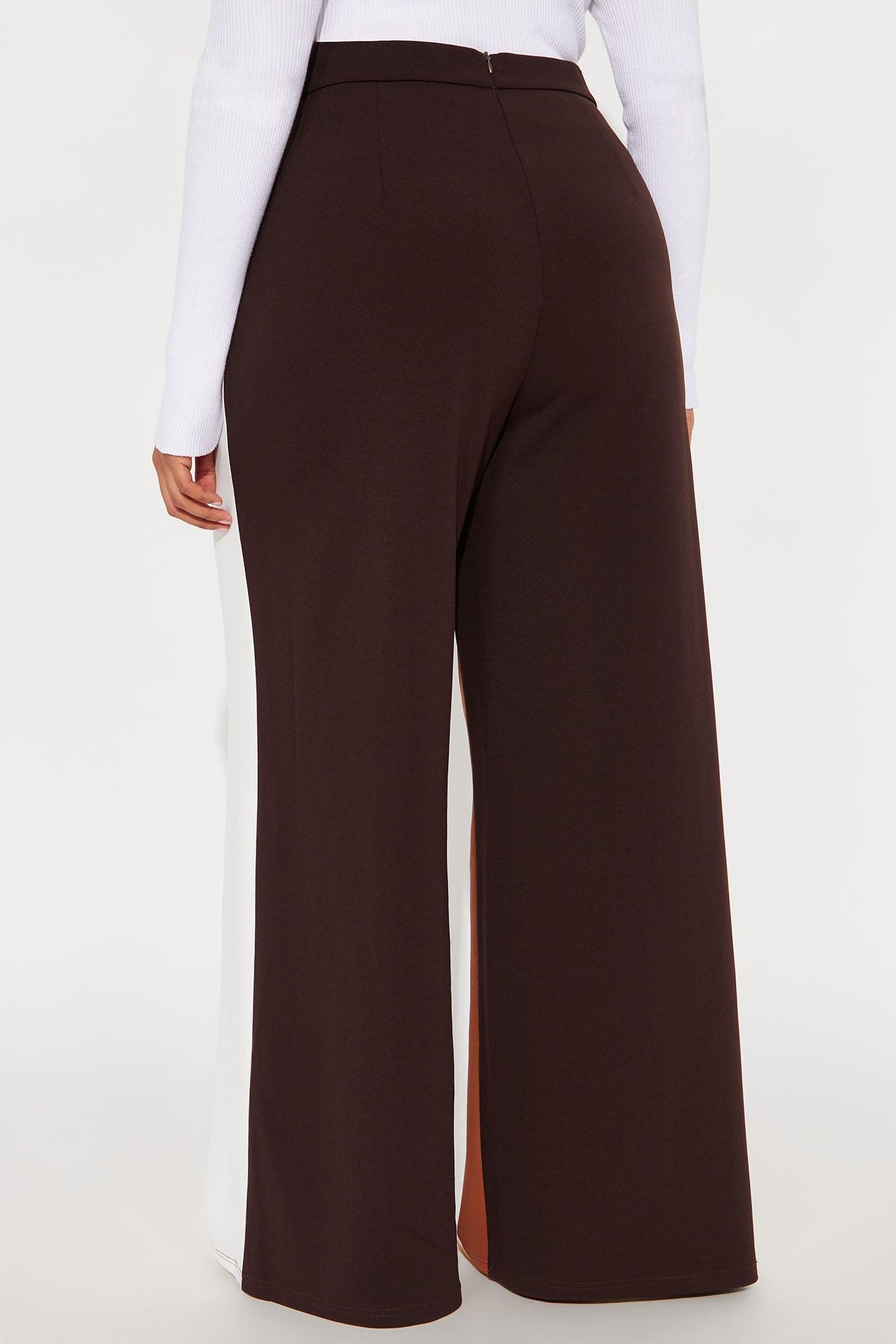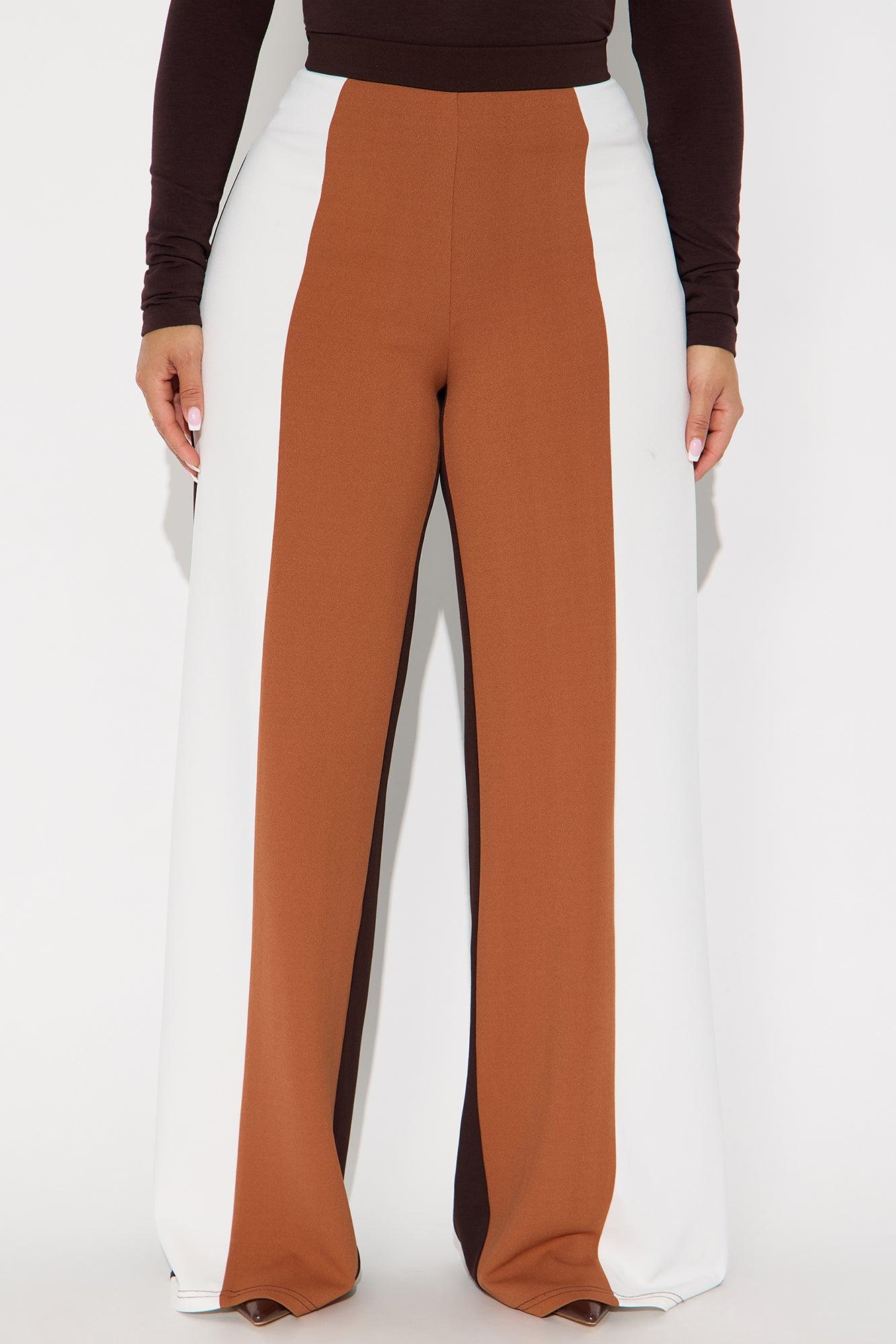 Nellie Colorblock Wide Leg Trouser Pant 33 - Brown/combo Female