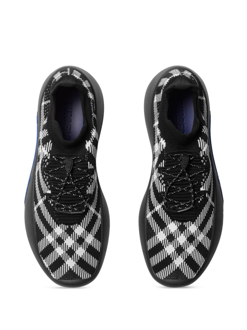 Burberry Neptune sneakers | Black | black/white | nova check pattern | signature Equestrian Knight motif | knitted upper | stretch-design | front toggle fastening | round toe | sock-style ankle | leather lining | branded leather insole | chunky sole | Polyester/Elastane/Polyamide/Calf Leather/Polyurethane/Thermoplastic Polyurethane (TPU) | Low-Tops | Sneakers | Shoes | Men