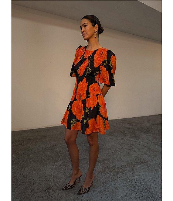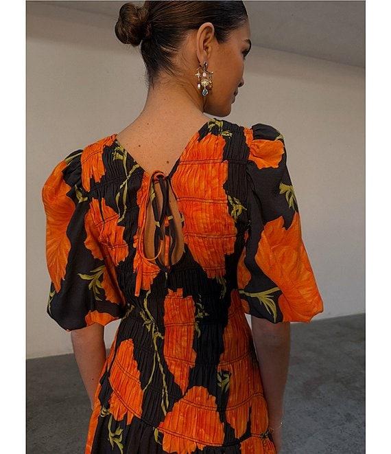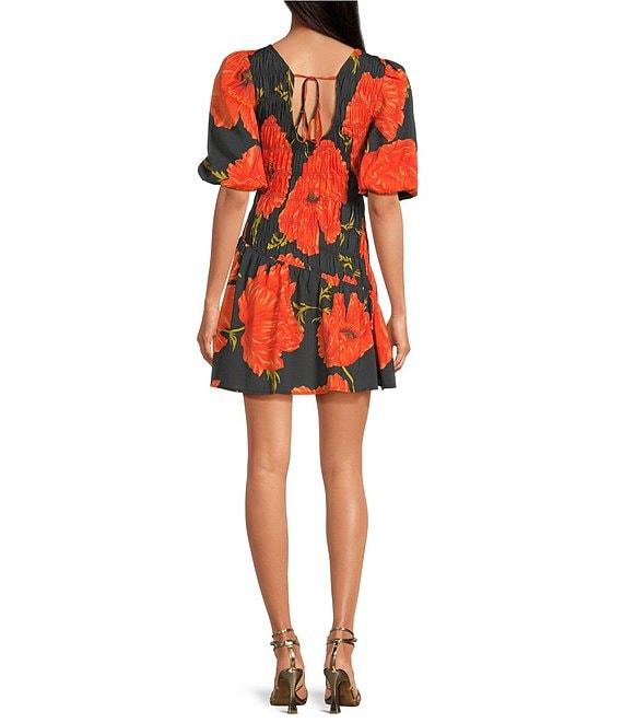 From Never Fully Dressed, this dress features: Poppy floral print Crew neckline Short puff sleeves Tie neck fastening Reversible neckline designed to be worn either way Shirring along the front Pullover construction Approx. 33" length Viscose/polyester Machine wash Imported.