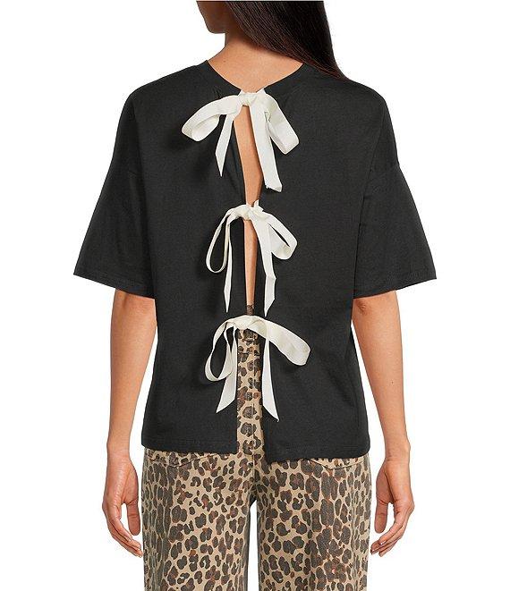 Never Fully Dressed Oversized Crew Neck Short Sleeve Knit Bow Back Shirt