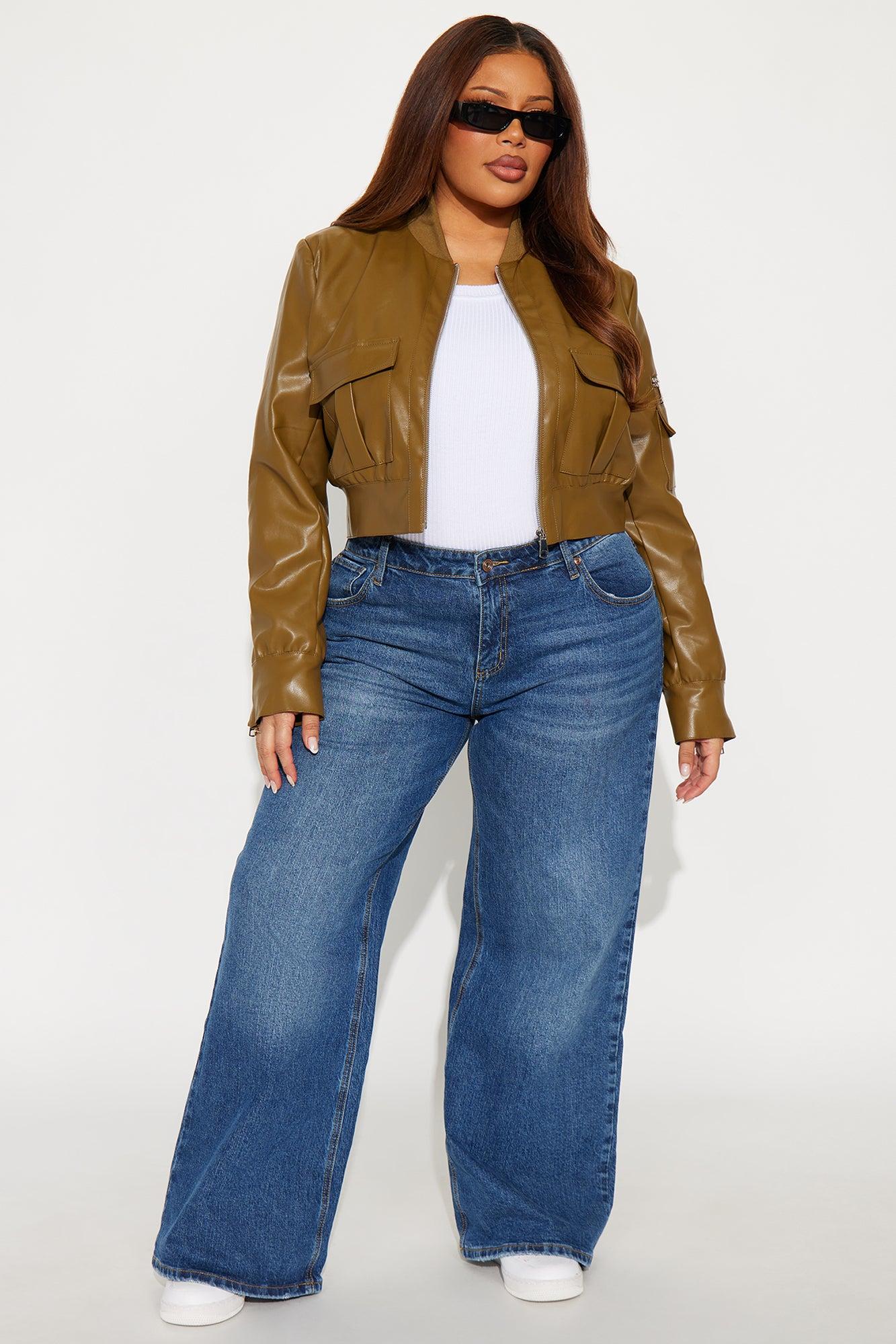 New Rules Cropped Faux Leather Cargo Jacket - Olive Female