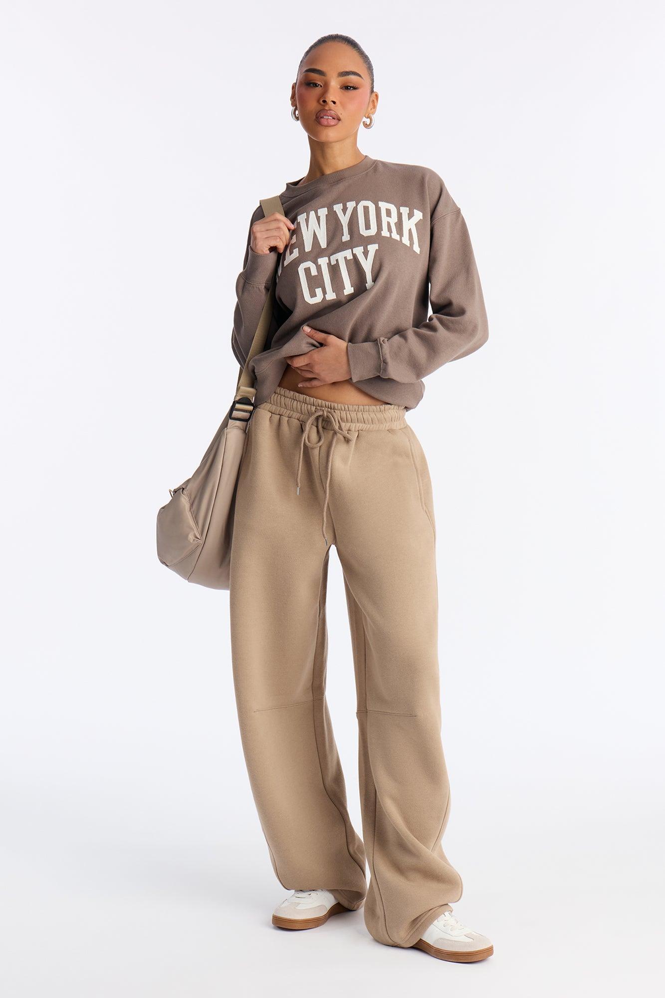 New York City Brown Crew Fleece Sweatshirt - Brown Female