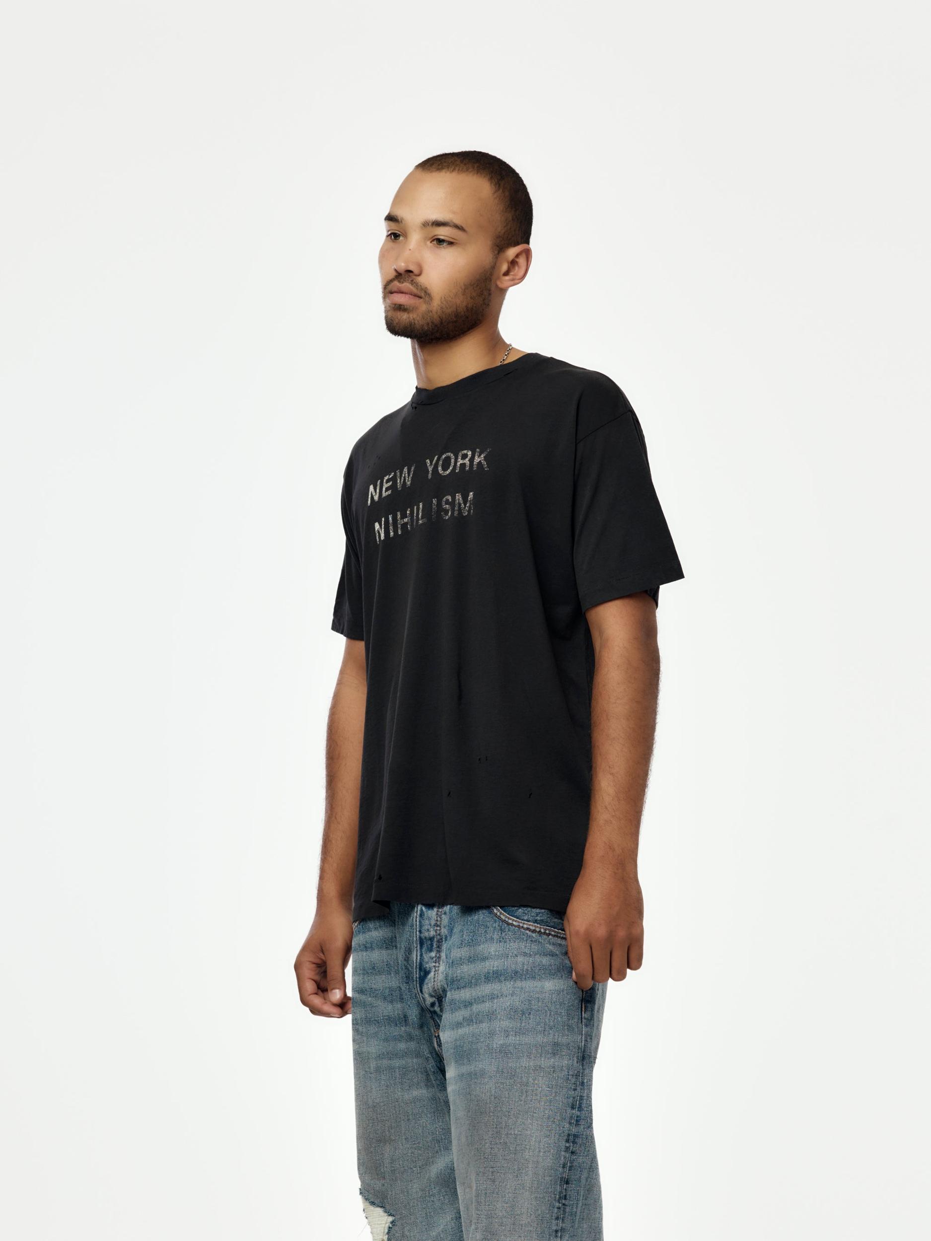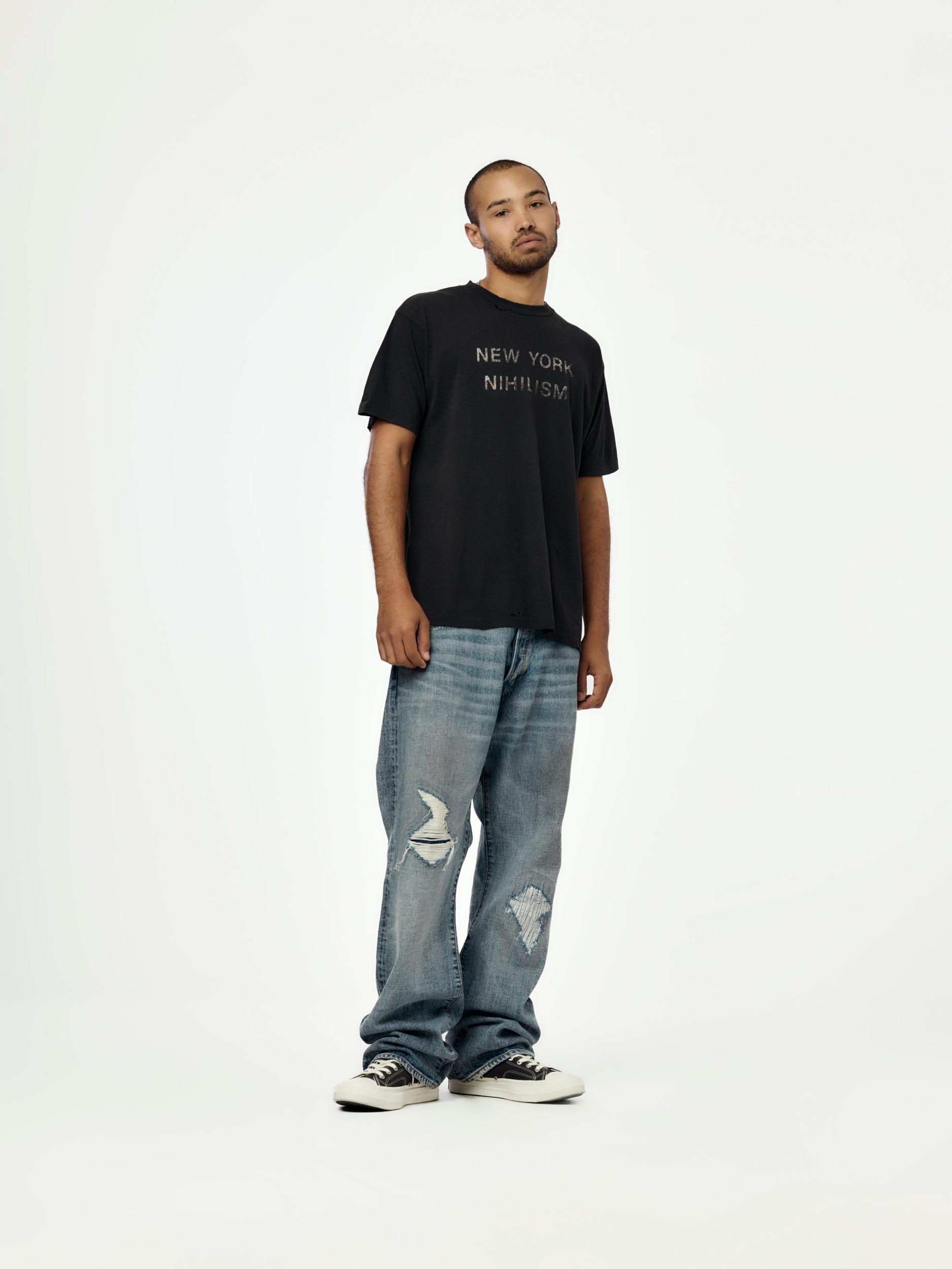 A graphic tee rooted in punk ideology and urban decay. The New York Nihilism Tee features De La Tombe’s signature faded black wash and confrontational artwork, delivering a worn-in feel with sharp cultural intent. Designed for everyday rotation. SKU: #0131
