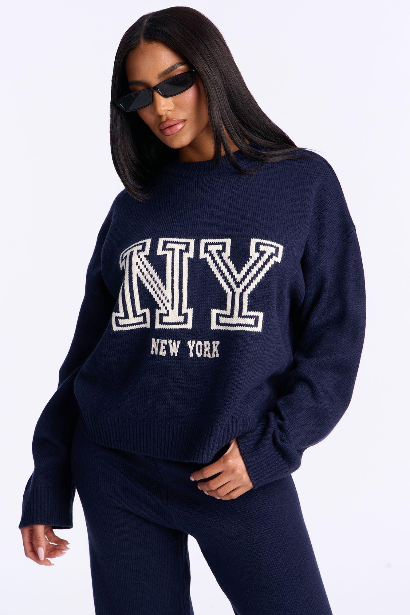 New York Prep Crew Neck Sweater Pant Set - Navy Female