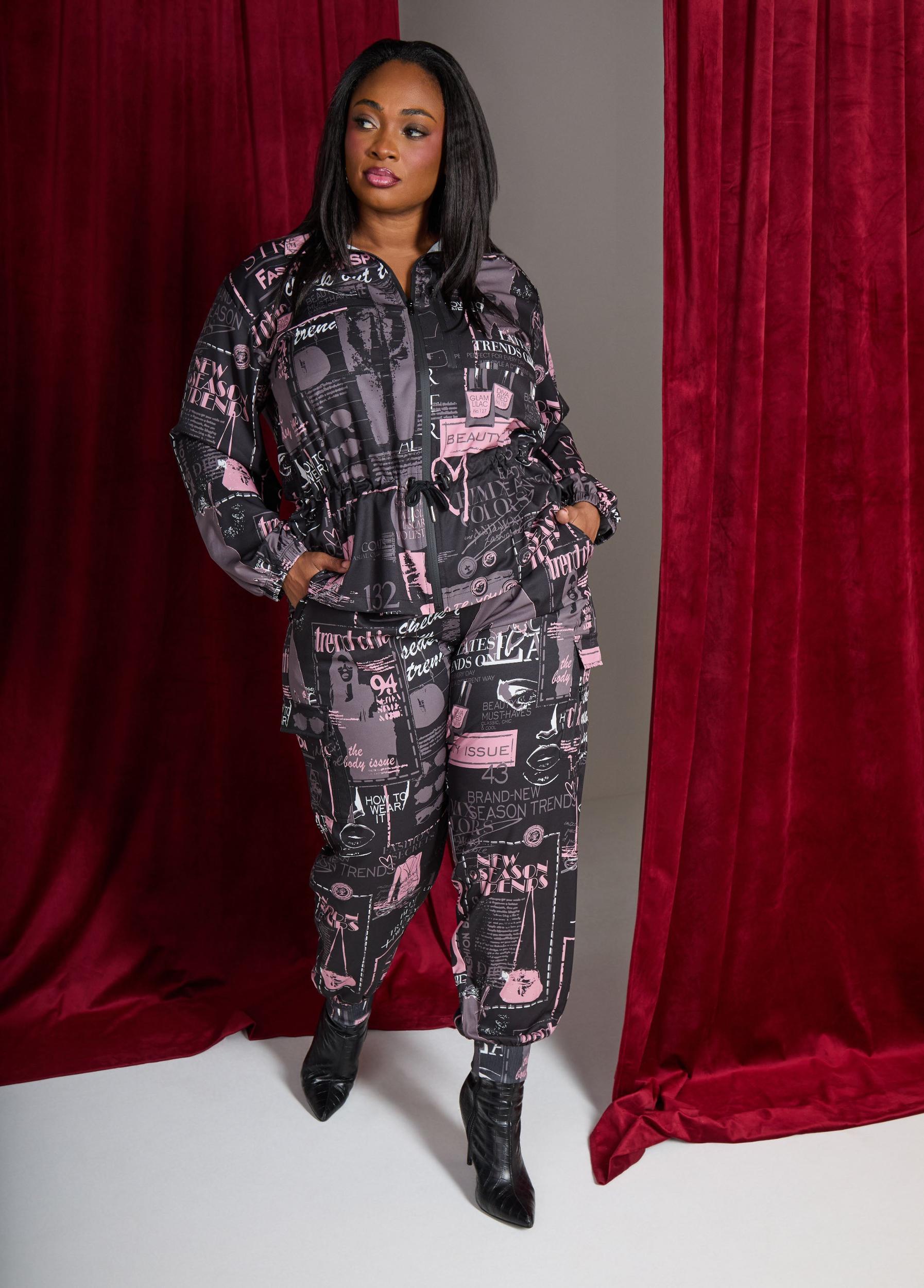 The print of this jacket doesn't steal the show, it is the show! With flap pockets, a sleek front zip and elasticized cuffs for a tailored fit. Cinch the drawstring waist to your liking, and pair it with the matching joggers for a coordinated, chic set.