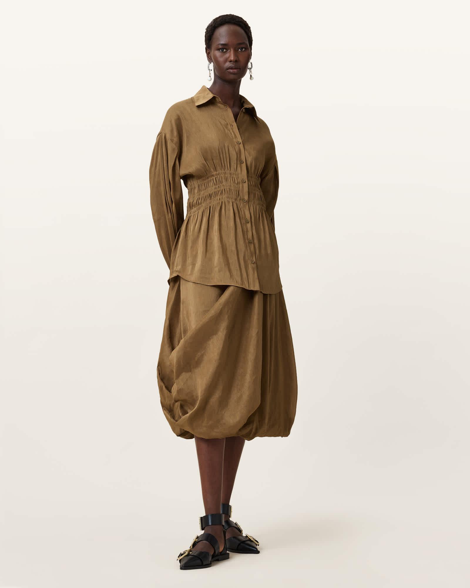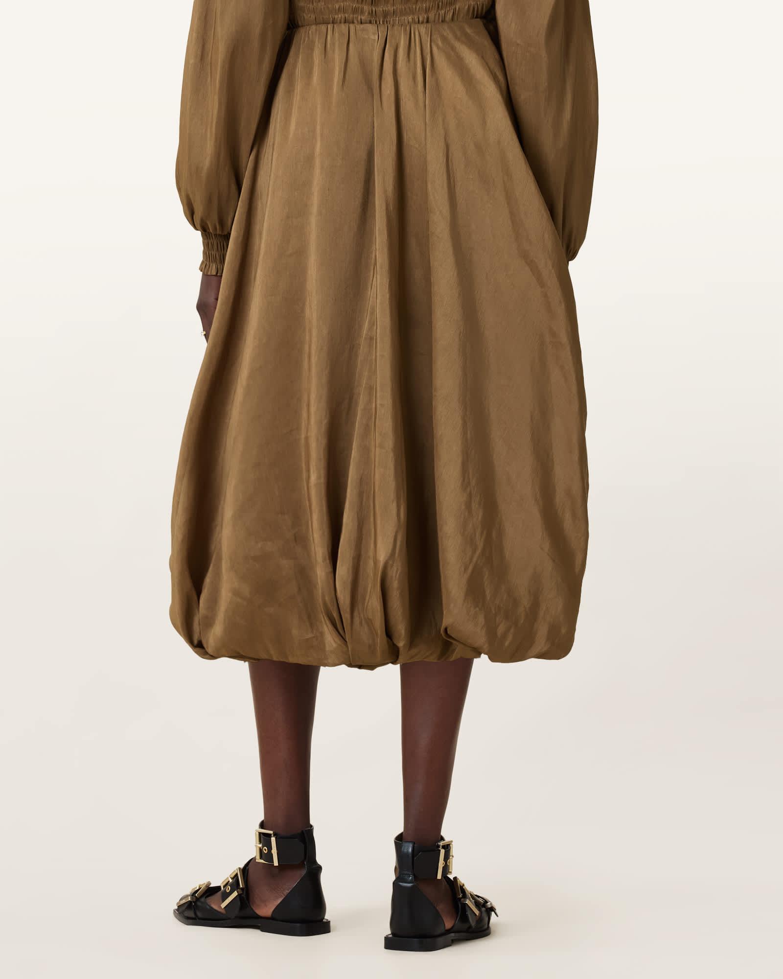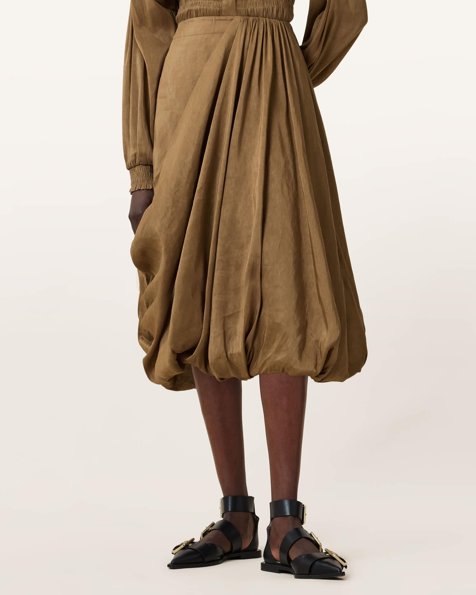 Nia Draped Midi Skirt BREEN BROWN | ALLSAINTS US