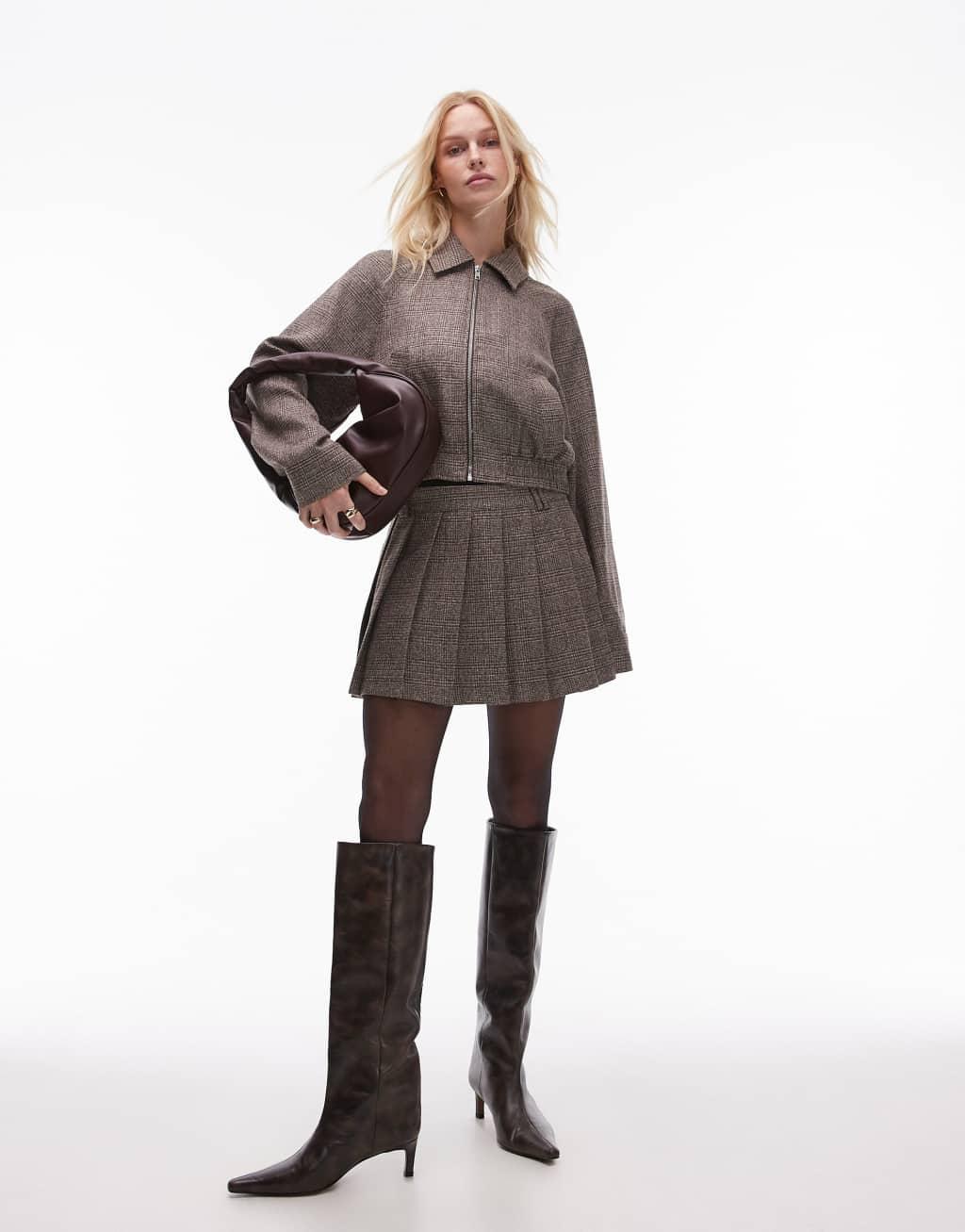 Nia fennel herringbone pleated skort in brown - part of a set
