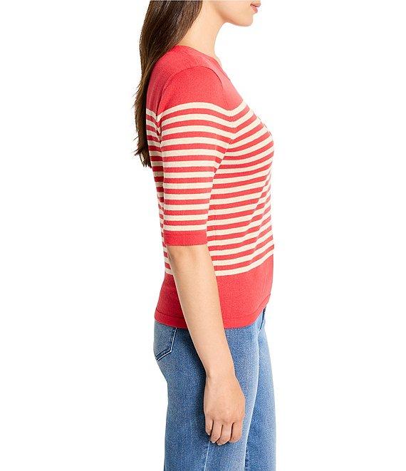 NIC + ZOE Knit-In Stripe Round Neck Elbow Sleeve Sweater Tee
