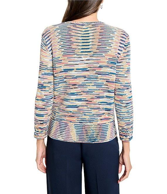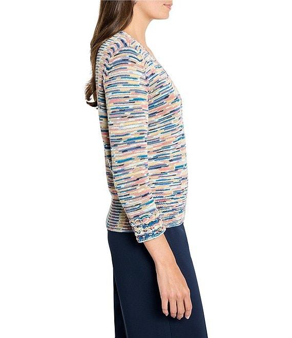 NIC + ZOE Mix Fringe V-Neck 3/4 Sleeve Crochet Cuff Sweater