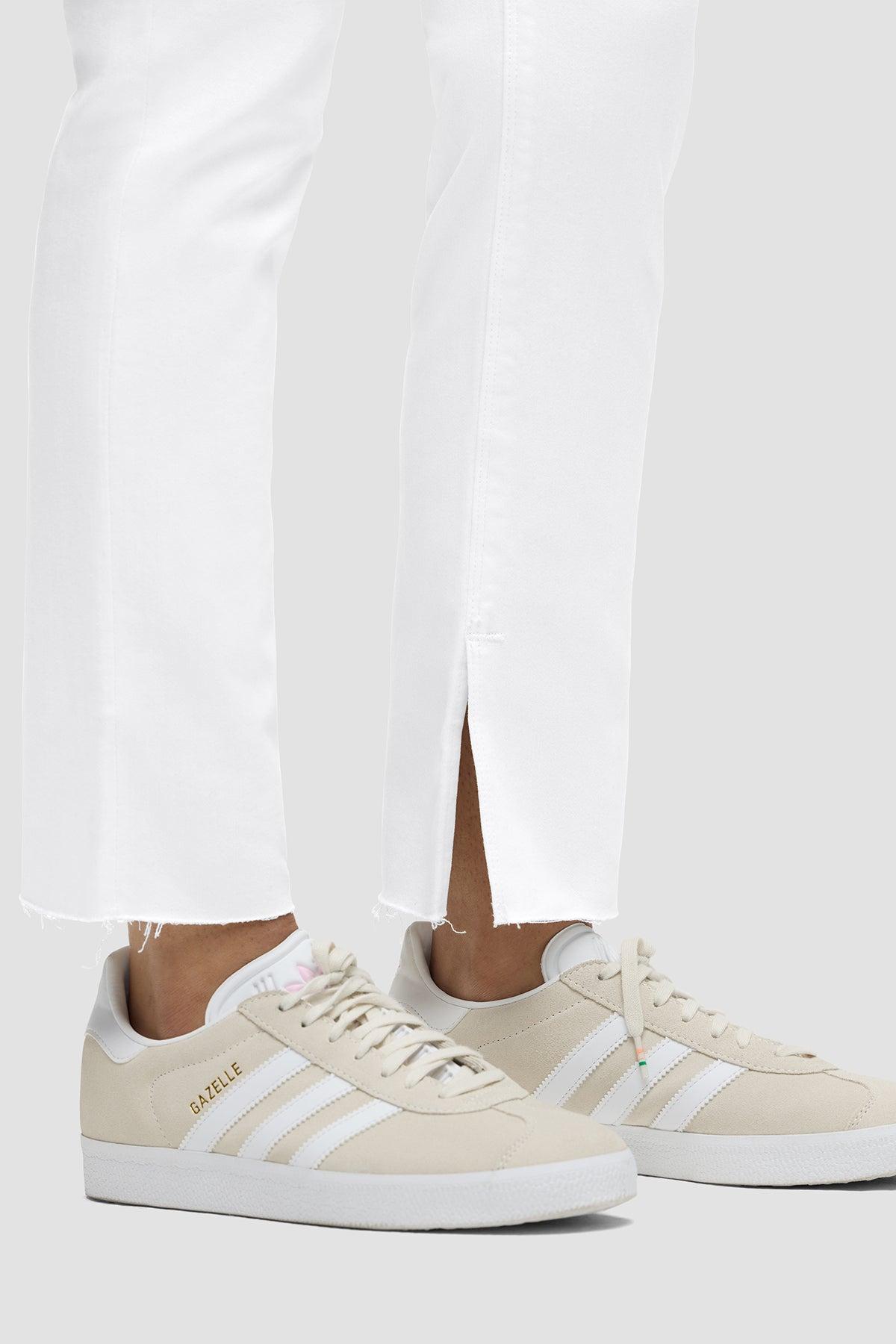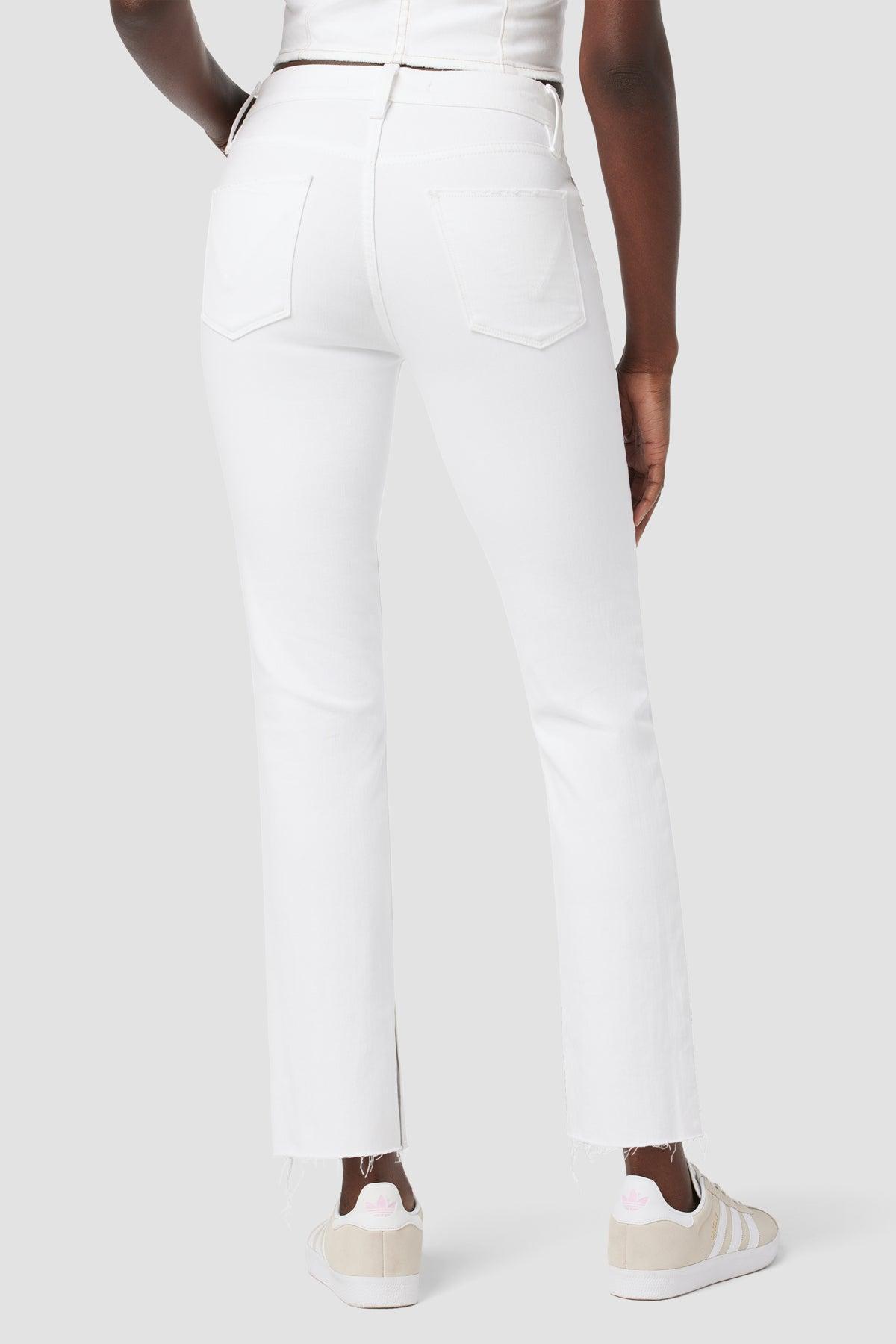 Description Our Nico Mid-Rise Straight Ankle w/ Slit Hem is cut for a streamlined fit in premium super stretch denim. The Spring White wash features a slit hem and five-pocket details.This style runs big. We recommend sizing down one full size. Product Details Front Rise: 9.25", Leg Opening: 14", Inseam: 28"Model Height 5'9"Model wearing size 25Measurements based on size 27 Fit & Care Content: 90% Cotton, 8% Polyester, 2% ElastaneMachine wash cold with like colorsDo not bleachTumble dry low or hang to dry