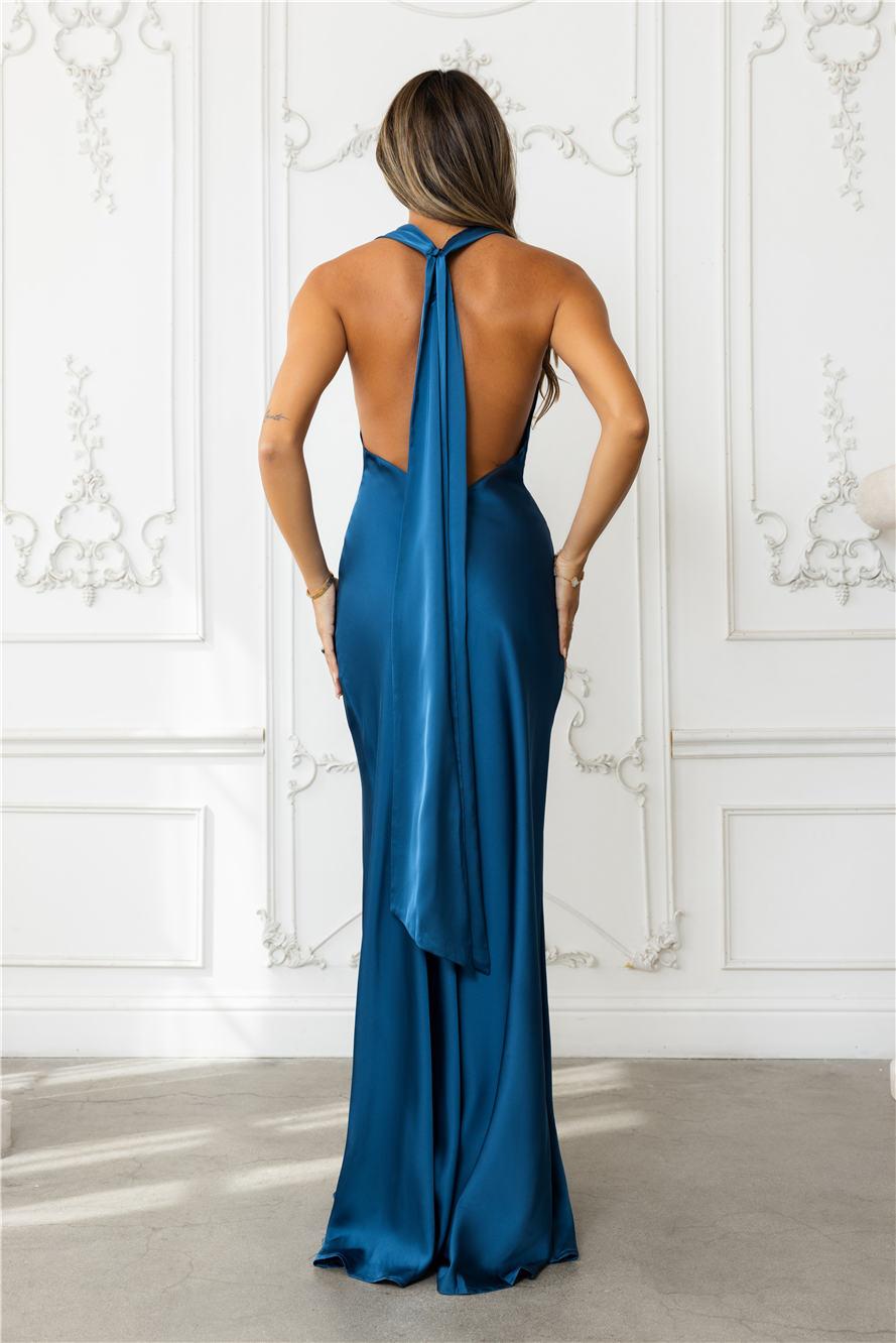 Nightfall Noir Halter Satin Maxi Dress Teal