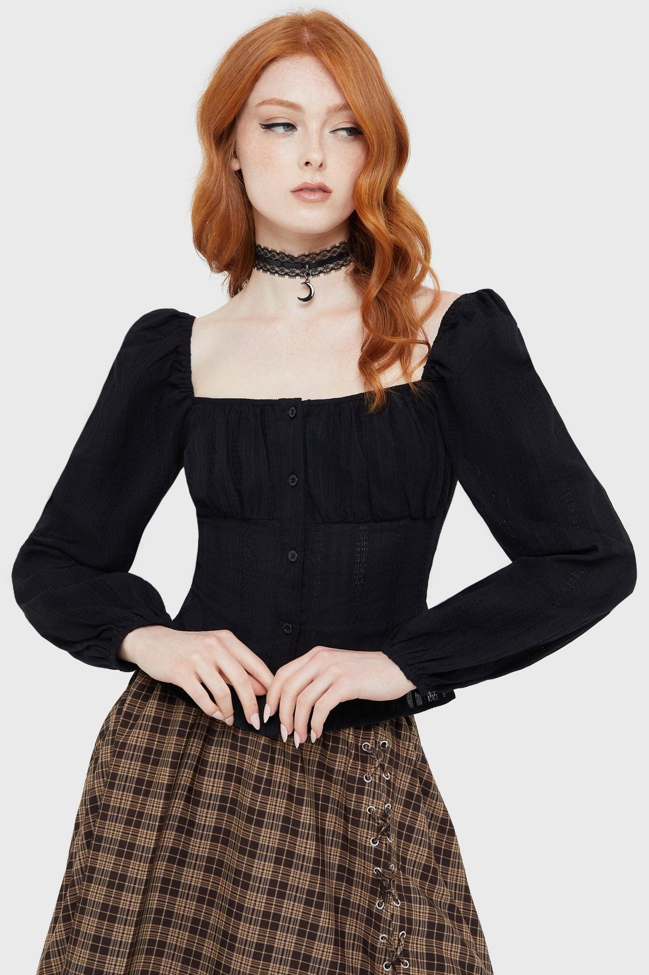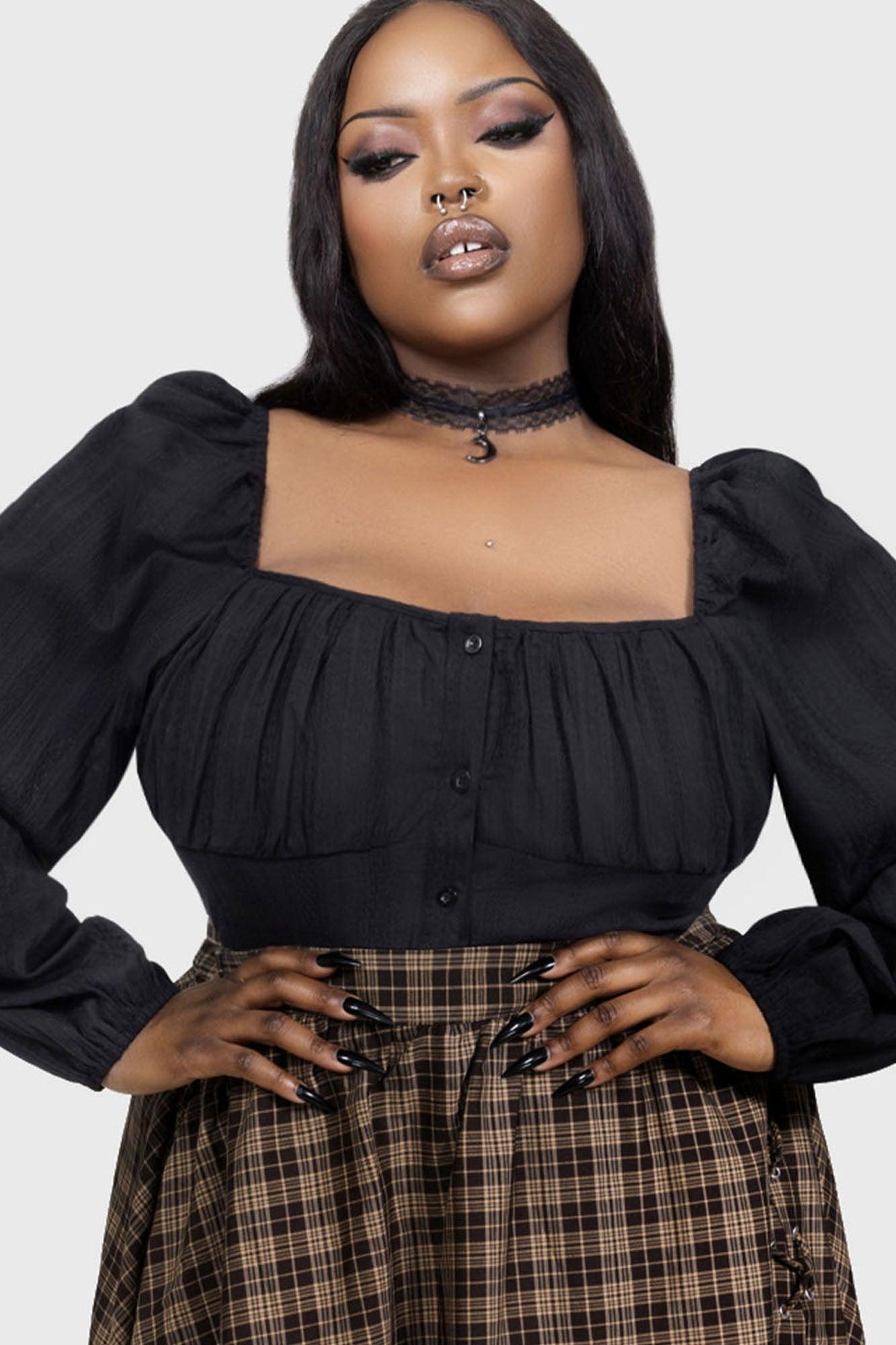 NIGHTWOOD- Light-weight, cotton dobby stripe fabric.- Long puff sleeved, with elasticated cuffs.- Front button fastening.- Squared neckline.- Underbust empire seam.- Designed in Brighton, England.Model is 5'8 and wears a size XS.With KILLSTAR branding, 100% Cotton.Machine wash cold (30°c) / Do not bleach / Do not tumble dry / Iron at low temperature / Do not dry clean. Imported.
