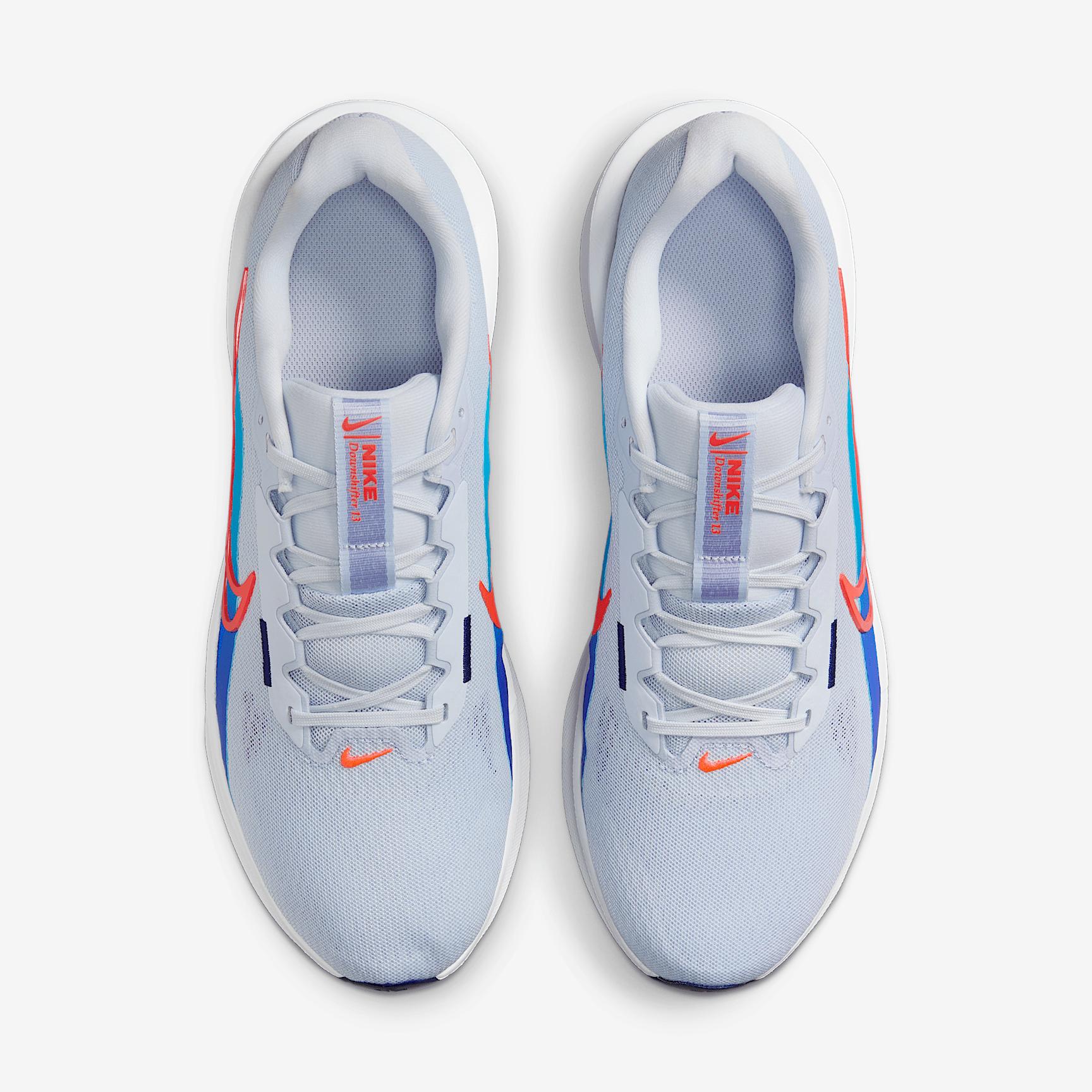 Whether youre starting your running journey or an expert eager to switch up your pace, the Downshifter 13 is down for the ride. With a revamped upper and cushion and durability, it helps you find that extra gear or take that first stride toward chasing down your goals. Made with Nike Grind:The outsole is made from at least 15% Nike Grind material, made from scraps from the footwear manufacturing process. Breathable Mesh:Soft and comfortable mesh offers a high level of breathability. Supportive and Secure:An updated internal fit band offers containment around the midfoot for support and security. Product Details:Reflective details. Not intended for use as Personal Protective Equipment (PPE). Style: FD6454; Color: Football Grey/Deep Night/Blue Lightning/Bright Crimson; Size: 15; Gender: Male; Age Group: Adult | Nike Downshifter 13 Mens Road Running Shoes in Grey, Size: 15 | FD6454-012