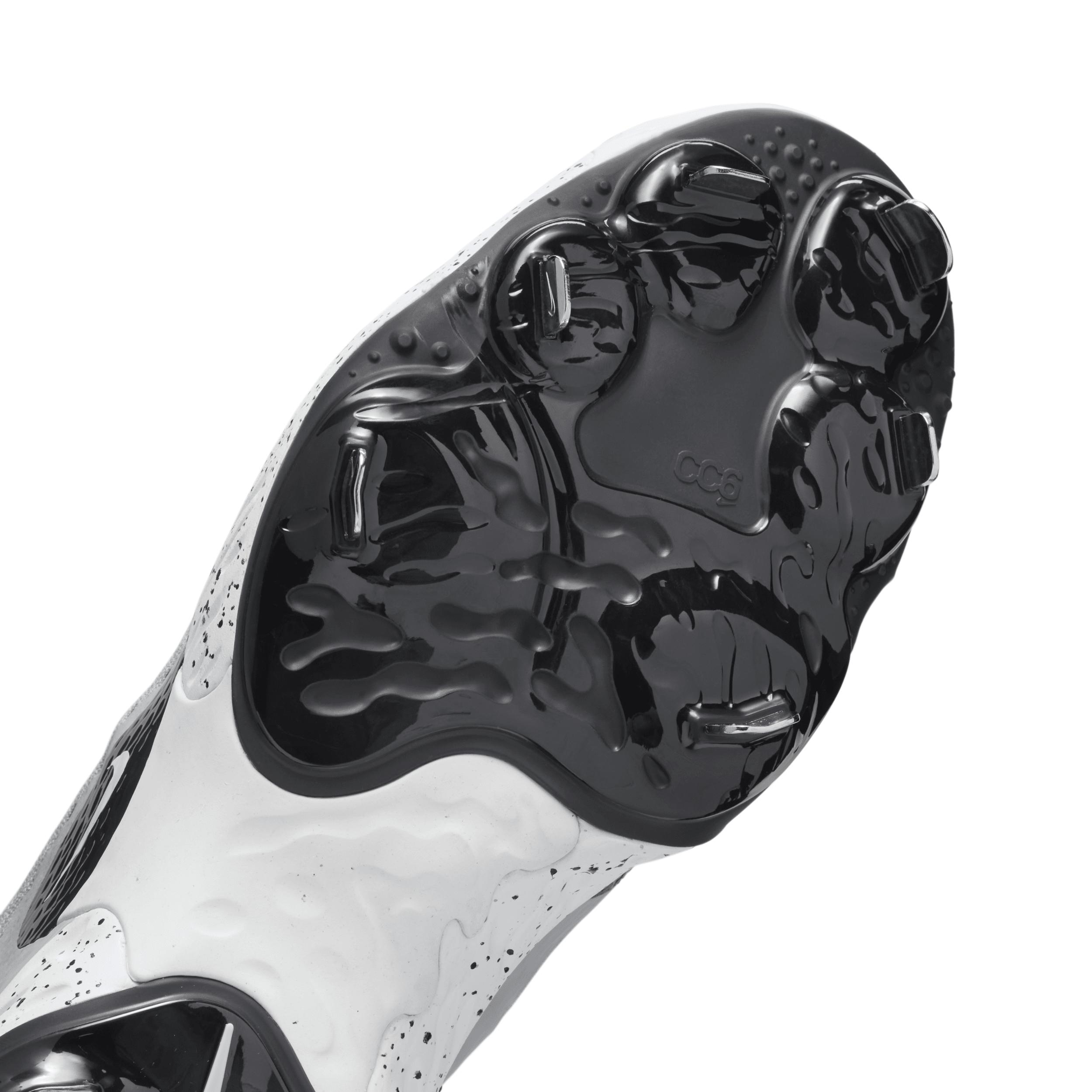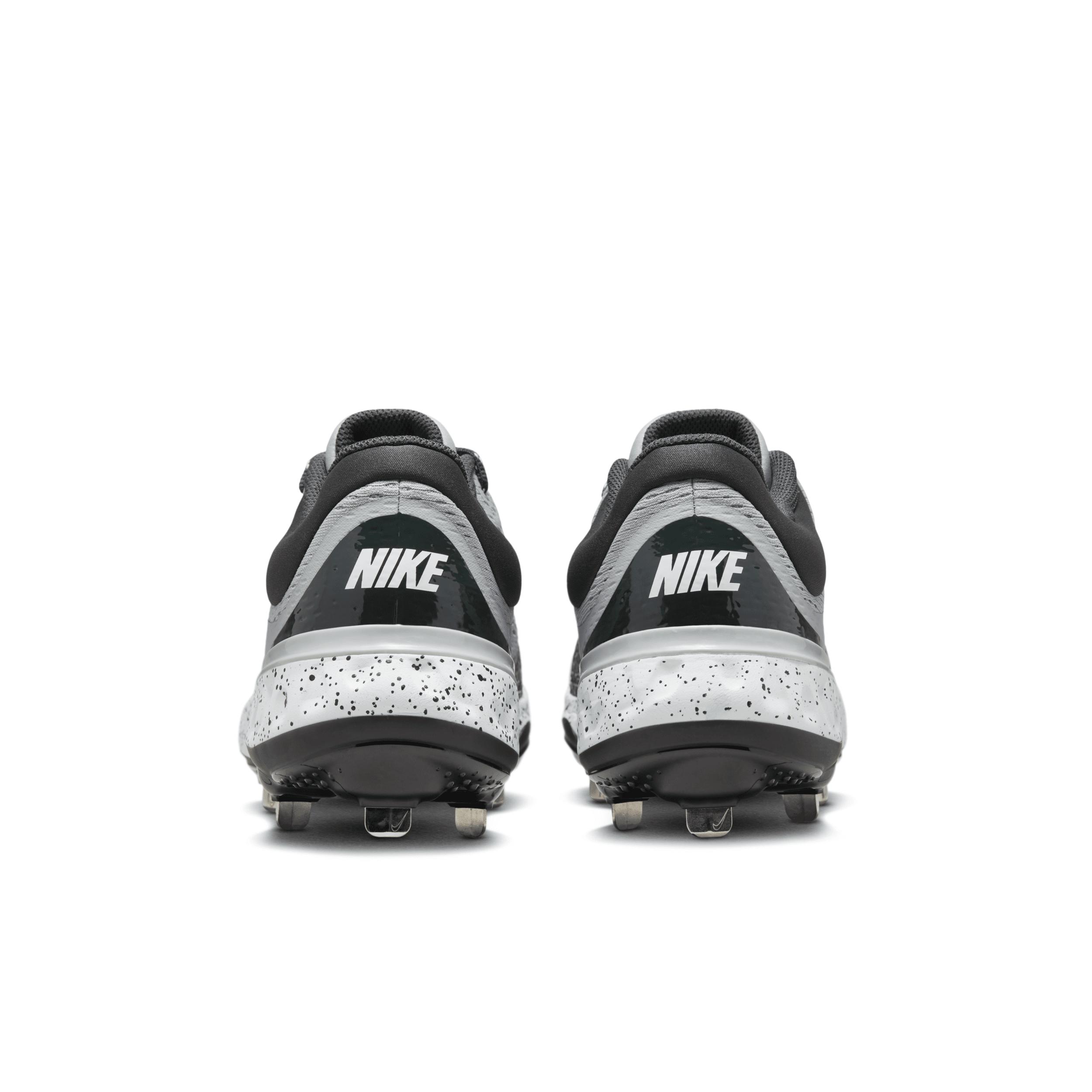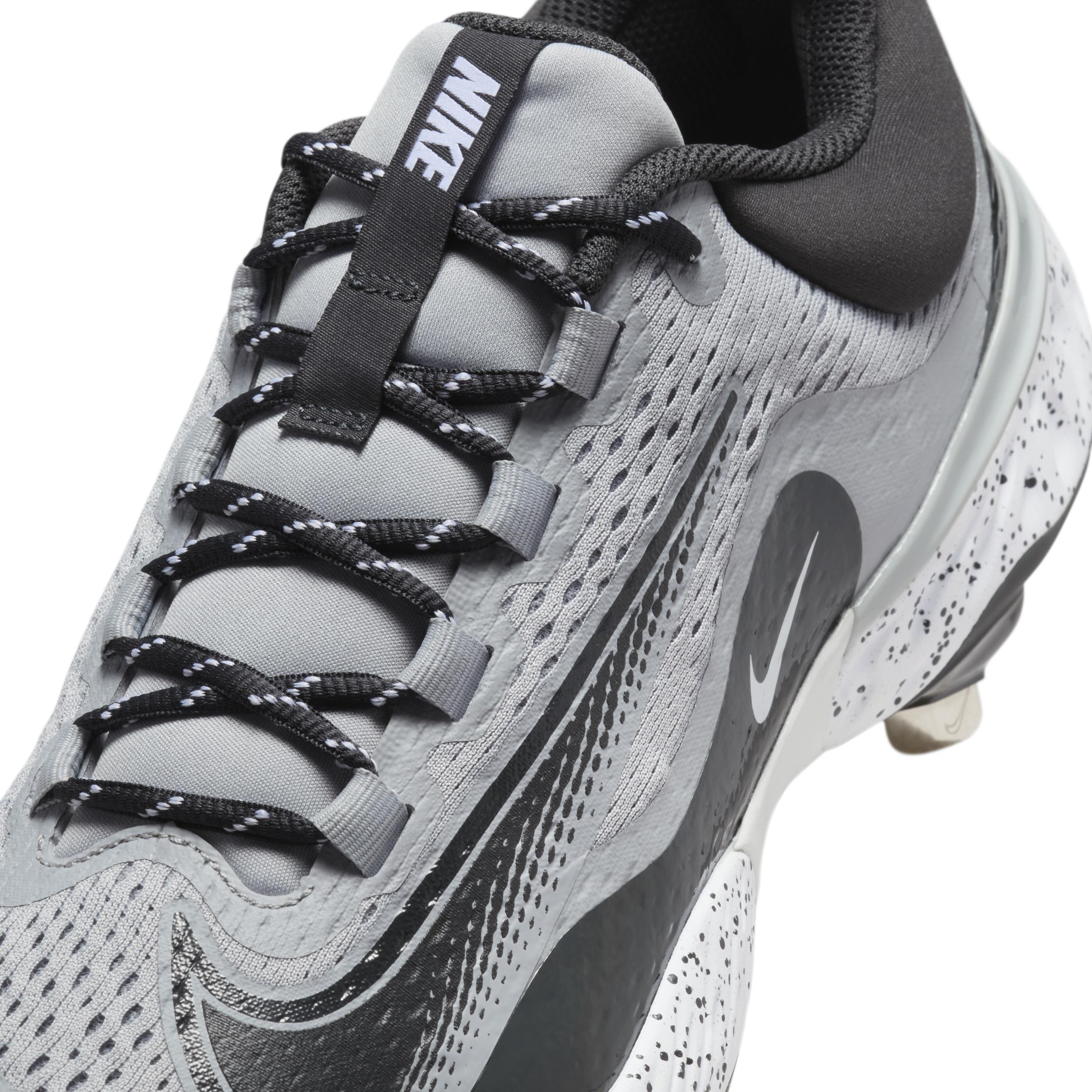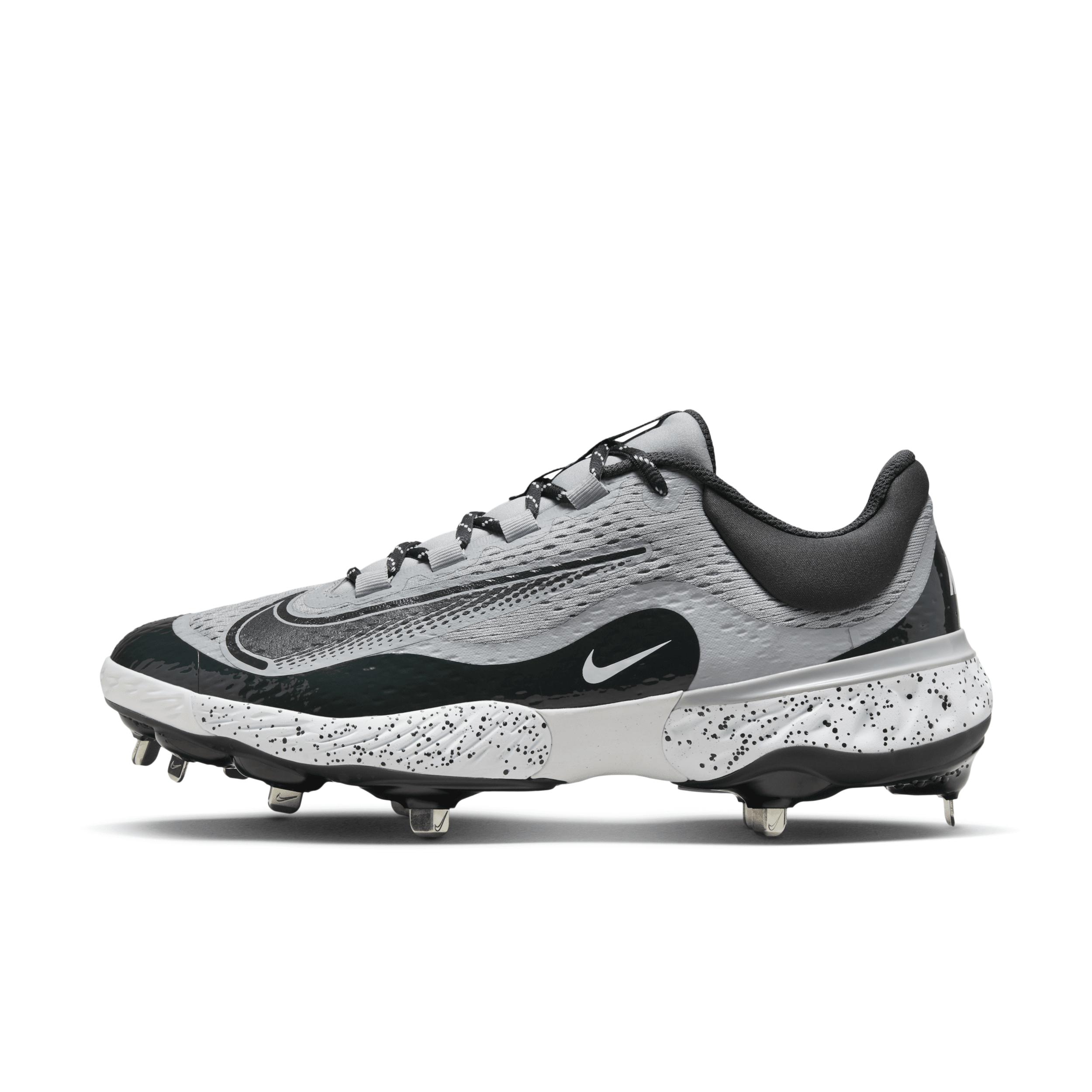 Let the baseball world know what kind of bat-wielding beast you are. The midsole has React foam cushioning, perfect for sprinting around the bags or robbing your opponent of extra bases. The plush, breathable upper sports a strap that helps keep you contained without adding any unnecessary weight. Plus, the grippy rubber traction is tailor-made for all-out effort plays. Smooth Ride Around the Diamond:Nike React technology is a lightweight, durable foam that delivers a smooth, responsive ride. Flex on the Field:2-piece plate with metal studs provides optimum flexibility and comfort underfoot to give you that “runnable” feel when traveling between the bases or roaming the outfield grass. Strap It Up:An updated anatomical lace around the midfoot helps meet your containment needs. A mesh window in the upper harkens back to the iconic Nike Huarache from the basketball world to help create lighter weight compared to its baseball predecessor. More Benefits:Internal webbing and updated mesh provide lightweight, breathable support and containment. Layers of breathable mesh and strategically placed overlays give you a secure fit. Style: DJ6521; Color: Wolf Grey/White/Dark Smoke Grey; Size: 15; Gender: Male; Age Group: Adult | Nike Alpha Huarache Elite 4 Low Men's Baseball Cleats in Grey, Size: 15 | DJ6521-004