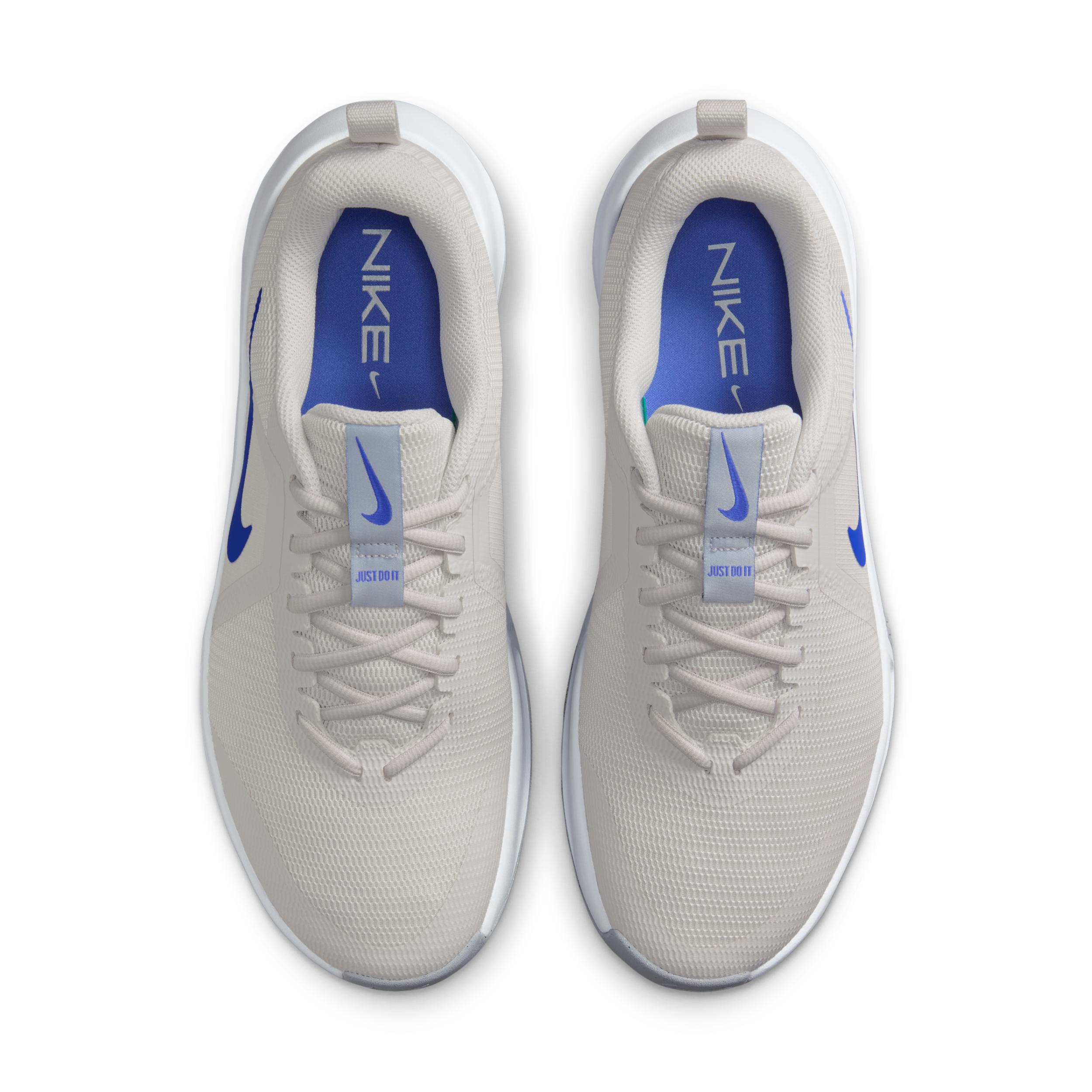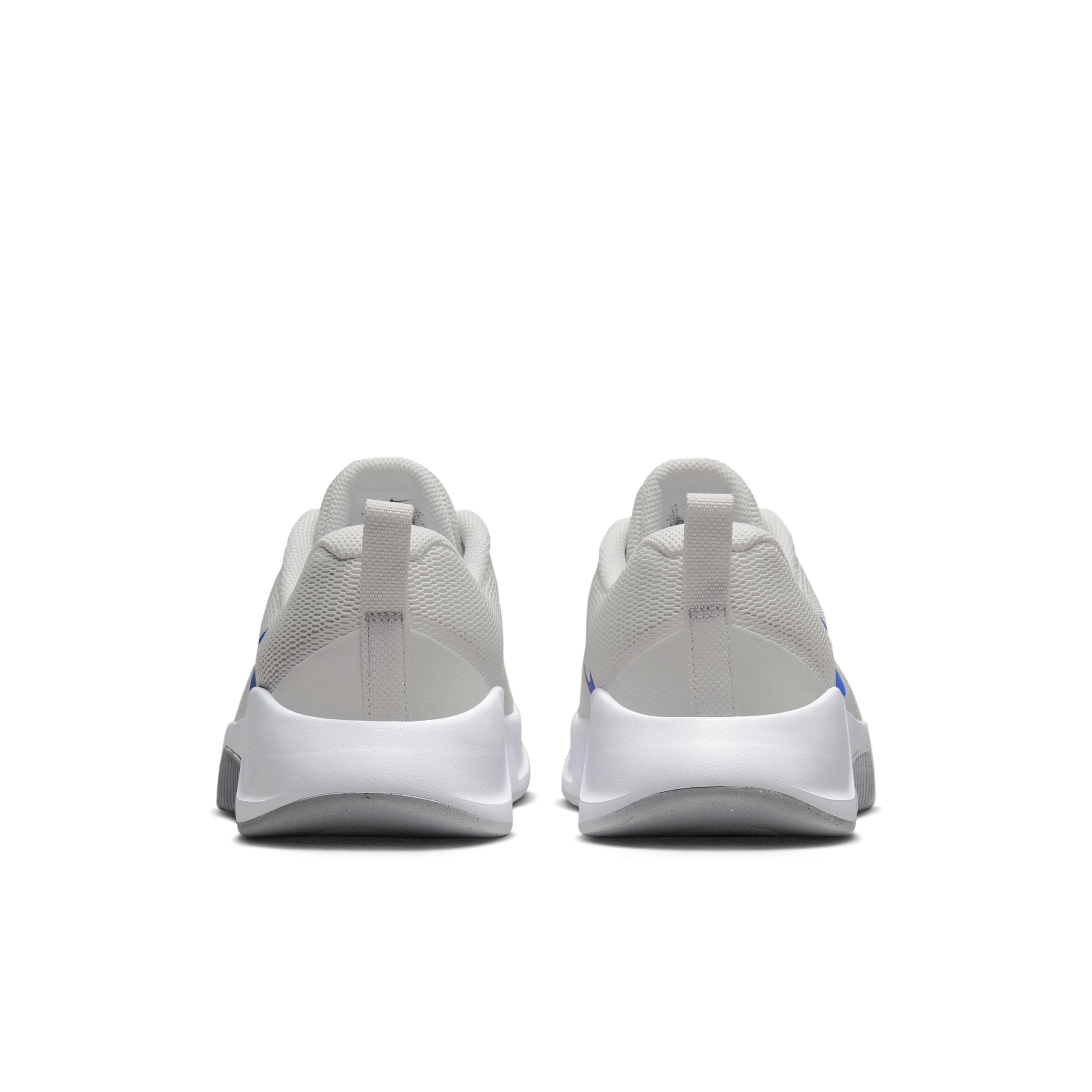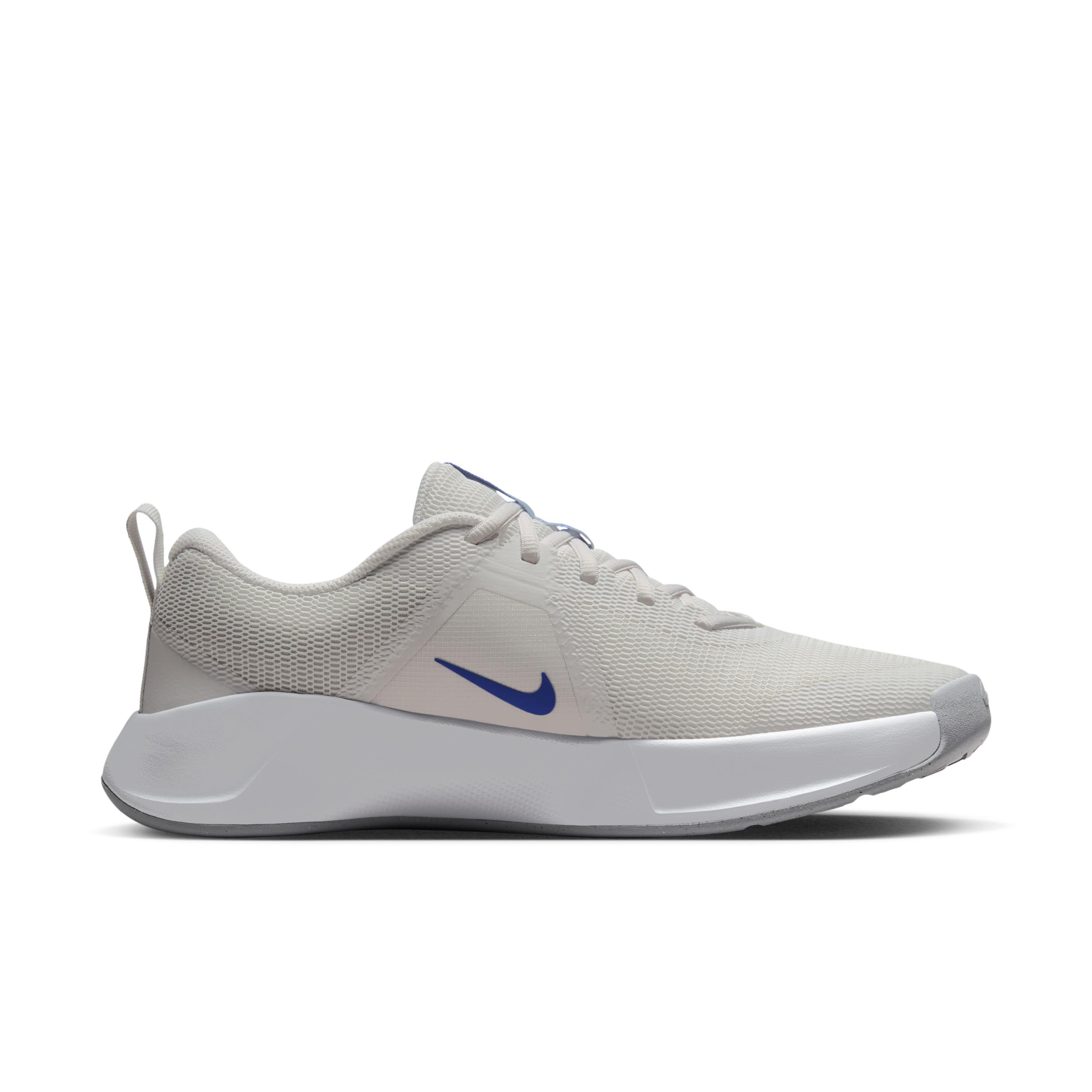 Make every gym moment, minute and movement matter. Whether youâre racing the clock, gritting through the last set or staying steady through heaves and holds, the MC Trainer 3 can help you hit your fitness intent. Breathable mesh in the upper turns this trainer into a shoe you can wear anywhere. And a flat base brings a level of stability to the motions you love most. Stability:High:The more supportive the shoe, the more stability it can give to your stance. A combination of tuned support and intentionally placed cushioning helps you feel secure with every step. A flat, stable base helps keep you steady and grounded when making lateral movements. Flexibility:Moderate:The more flexibility that you have in the midsole and outsole, the more you can move naturally. Forefoot flex grooves give you flexibility where you need it. Cushioning:Moderate:Cushioning under the forefoot and heel helps soften the impact of your workout. A foam midsole offers soft cushioning and helps you feel secure when in the middle of rigorous physical activity. More Benefits: Rubber adds to a versatile traction pattern that can help you move in multiple directions. Toe tip and heel skins provide an additional layer of durability in each high-wear zone. Style: FQ1831; Color: Platinum Tint/Wolf Grey/White/Comet Blue; Size: 10; Gender: Male; Age Group: Adult | Nike MC Trainer 3 Men's Workout Shoes in Grey, Size: 10 | FQ1831-006