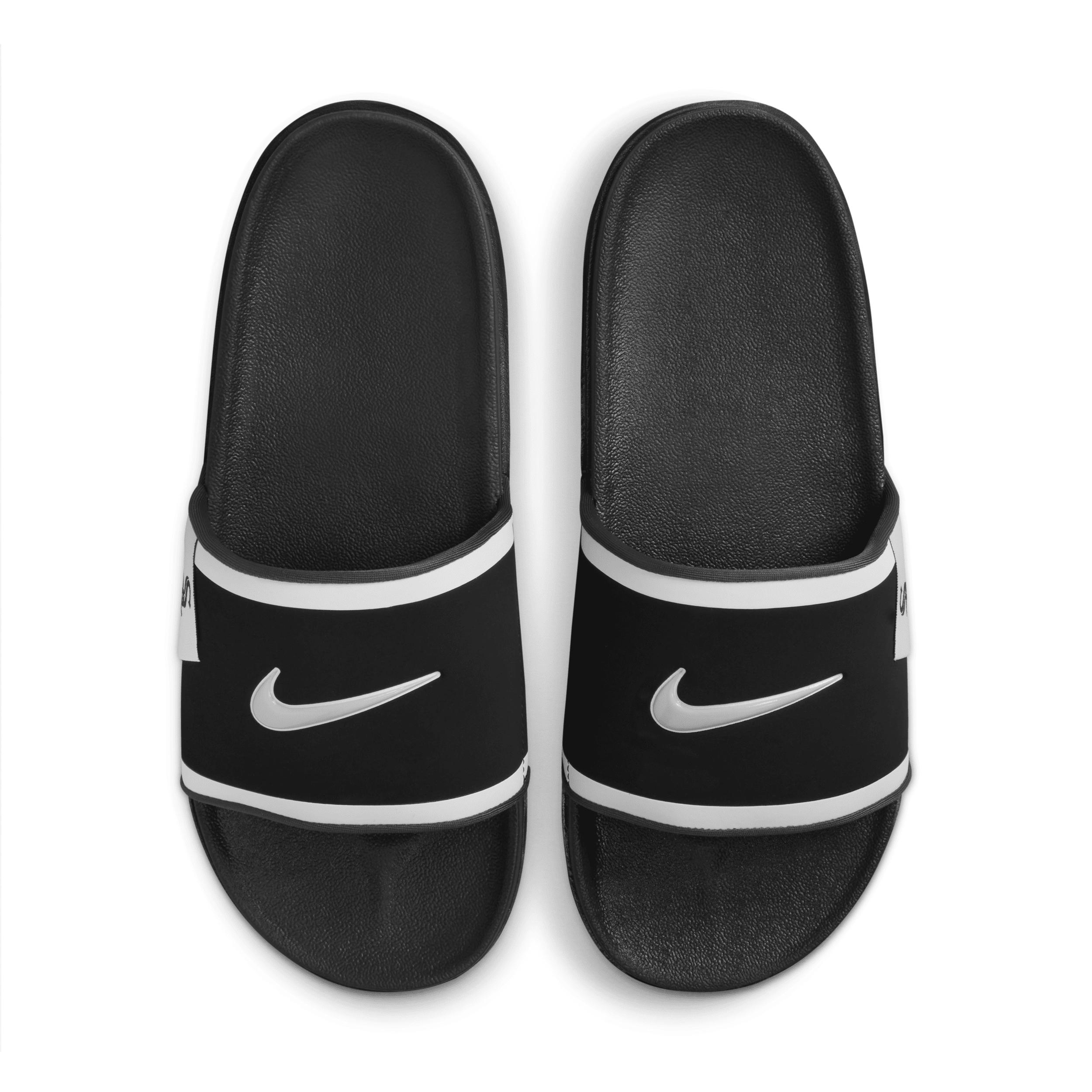 Walk around comfortably in Chicago White Sox style with these 2024 Off-Court Slide sandals from Nike. They feature bold brand and team graphics on the soft strap and dual-density foam to elevate both your devotion and comfort. The upper binding also provides a cushioned feel for additional support, making these sandals a must-have for any Chicago White Sox fan.