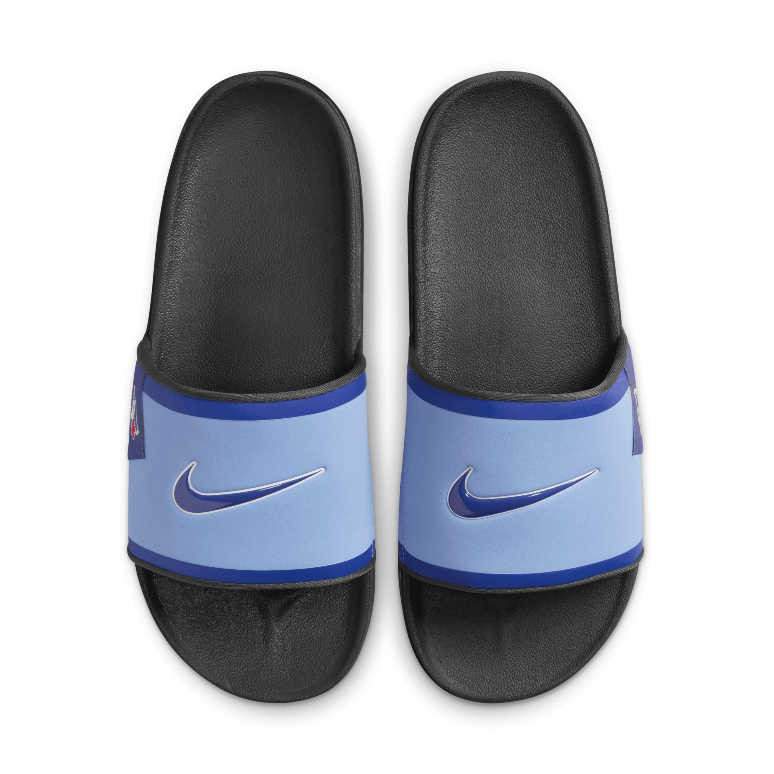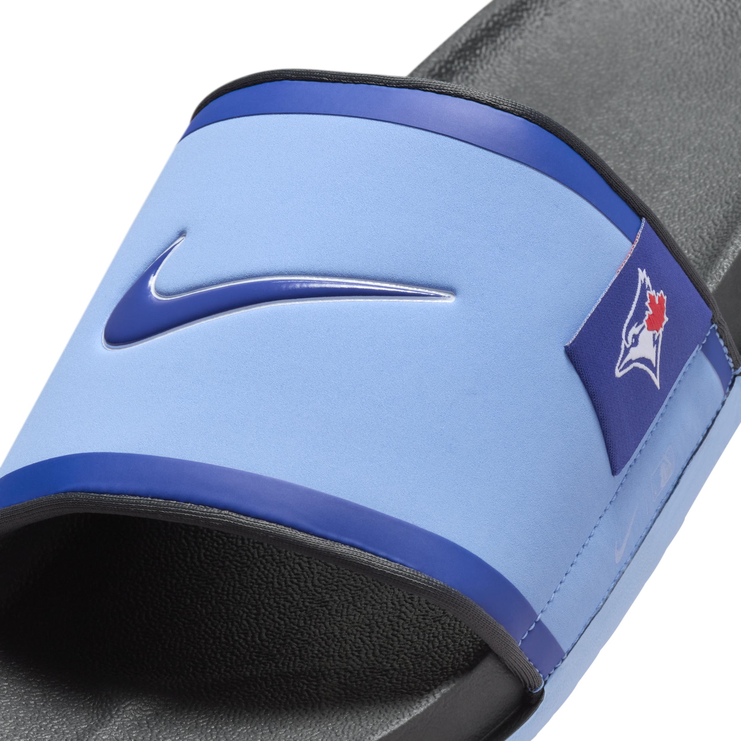 Walk around comfortably in Toronto Blue Jays style with these 2024 Off-Court Slide sandals from Nike. They feature bold brand and team graphics on the soft strap and dual-density foam to elevate both your devotion and comfort. The upper binding also provides a cushioned feel for additional support, making these sandals a must-have for any Toronto Blue Jays fan.