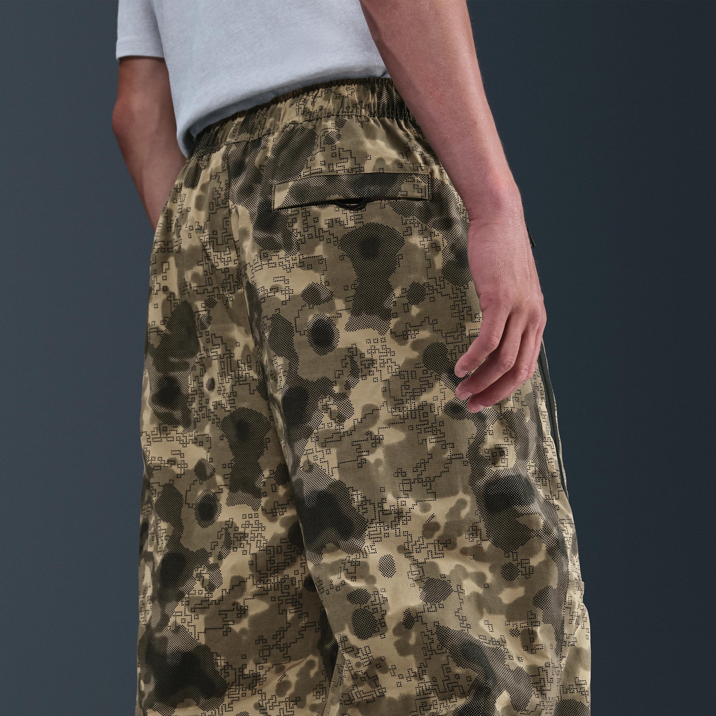 The rugged look of camo fatigues gets a technical upgrade. Our version is made with cool and crinkly nylon fabric that's sweat wicking and slightly stretchy. Their oversized fit is paired with articulation at the knees and bungees at the ankles for quick adjustments. Sweat-Wicking Comfort:Nike Dri-FIT technology moves sweat away from your skin for quicker evaporation, helping you stay dry and comfortable. Technical Fit:The loose fit feels extra roomy though the seat and legs. Articulation at the knees offers ease of movement and a fresh Tech aesthetic. Elastic bungees with cord locks at the waist and ankles let you draw up the perfect fit. Secure Storage:An extra-large Tech tape-reinforced side pocket has two separate compartments to help you keep your essentials organized. It's paired with an additional Tech pocket on the side, zippered hand pockets and a snap secure back pocket. [] Product Details:Embroidered Nike Swoosh logo. Body:94% nylon/6% spandex. Pocket bags:100% polyester. Machine wash. Imported. Style: HV0972; Color: Neutral Olive/Black; Size: 2XL; Gender: Male; Age Group: Adult | Nike Tech Men's Dri-FIT Woven Camo Loose-Fit Pants in Brown, Size: 2XL | HV0972-210