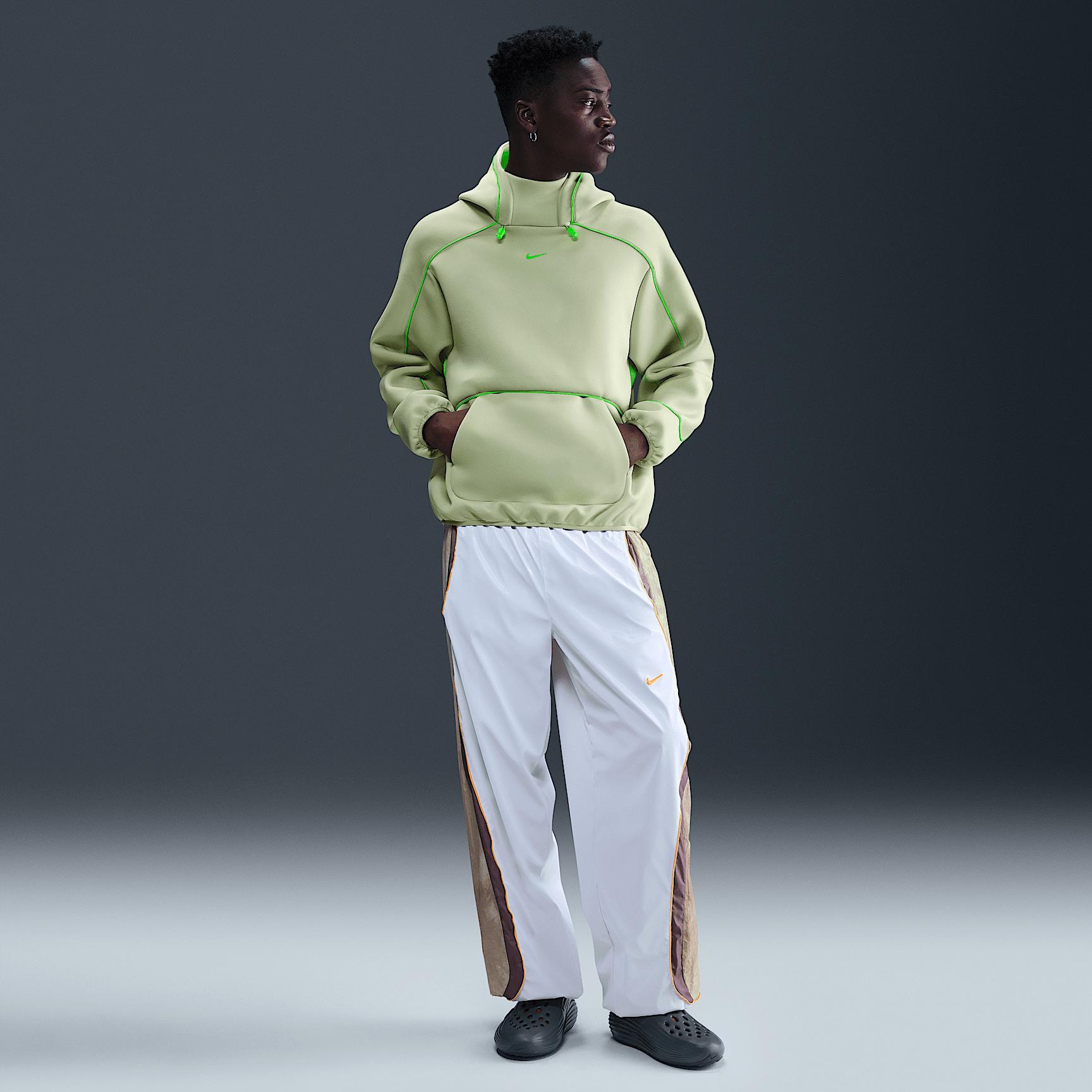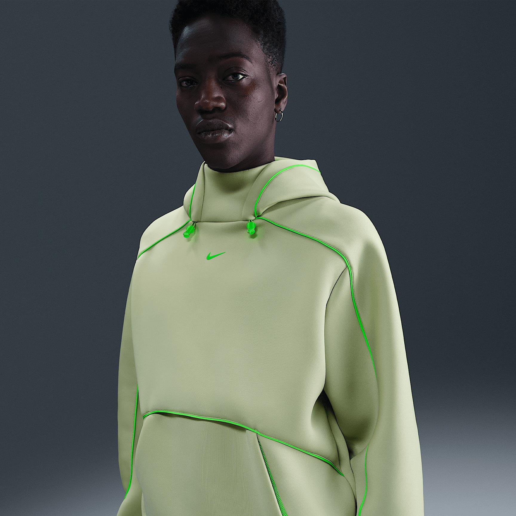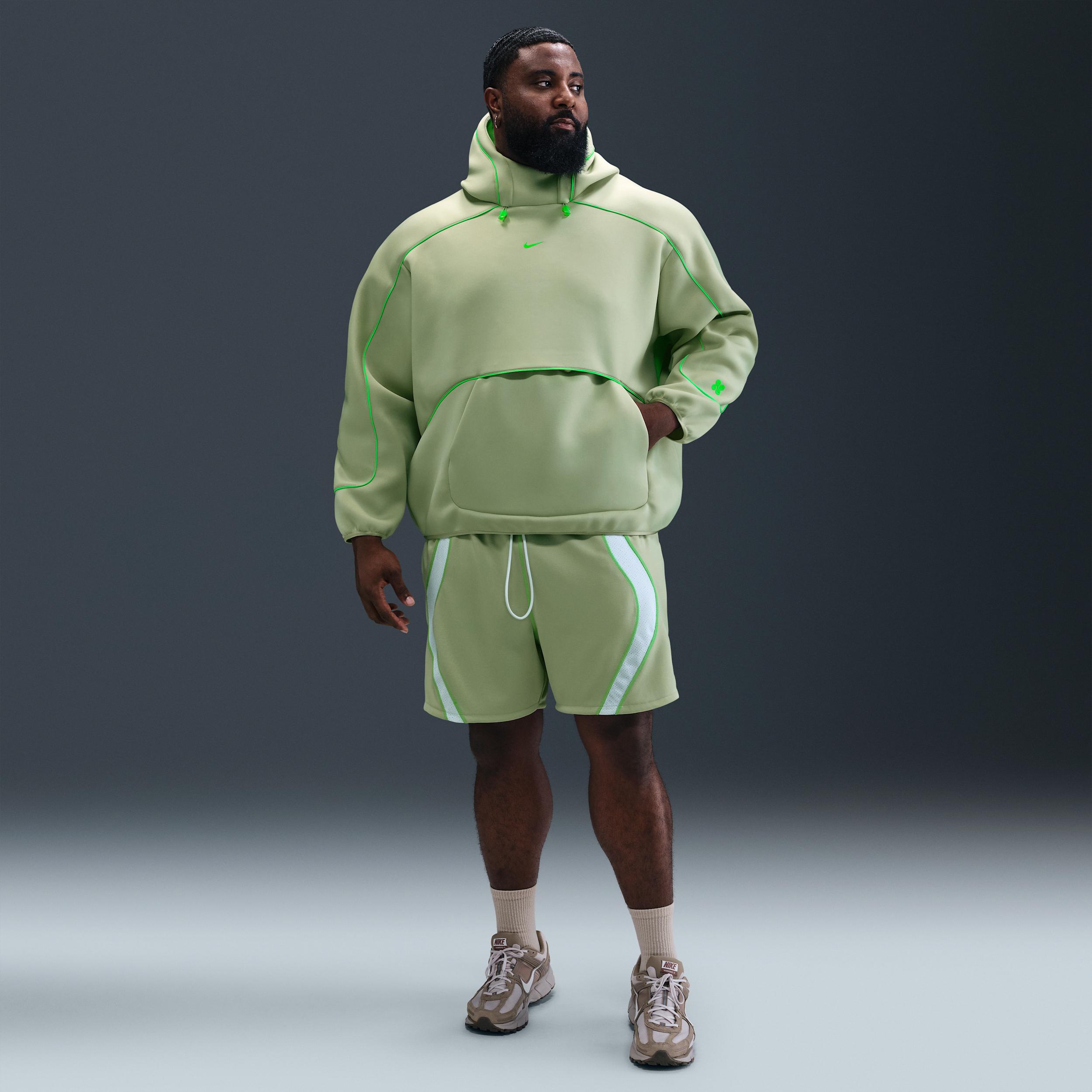 This oversized hoodie has a boxy fit with a bit of spandex in the fabric for stretch. A scuba hood with bungee adjusters lets you dial in the fit. Project F.R.O.G.:From off-balance Retro color combinations to fresh fits and fabrics, Project F.R.O.G. breathes new life into sport apparel. Ultimate Comfort:Lightweight fabric moves sweat away from your skin for quick evaporation, helping you stay dry and comfortable. An interior mesh panel allows ventilation to help keep your temperature in an optimal zone. Product Details:Project F.R.O.G. silicone graphic branding. Bungee adjustment at hood. Body: 88% Polyester/12% Spandex. Mesh: 100% Polyester. Machine wash. Imported. Style: HQ0465; Color: Olive Aura/Green Strike/Green Strike; Size: XL; Gender: Male; Age Group: Adult | Nike Project F.R.O.G. Mens Pullover Hoodie in Green, Size: XL | HQ0465-371