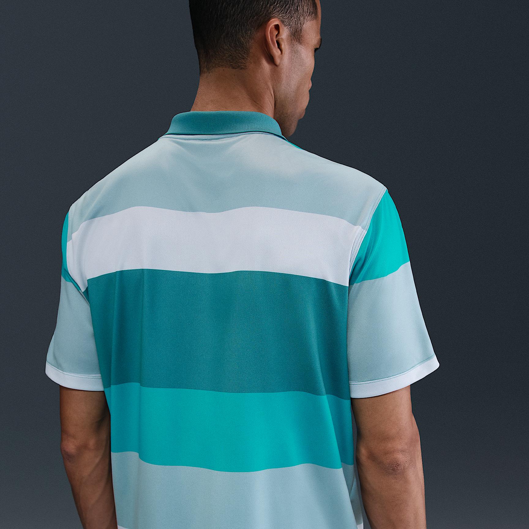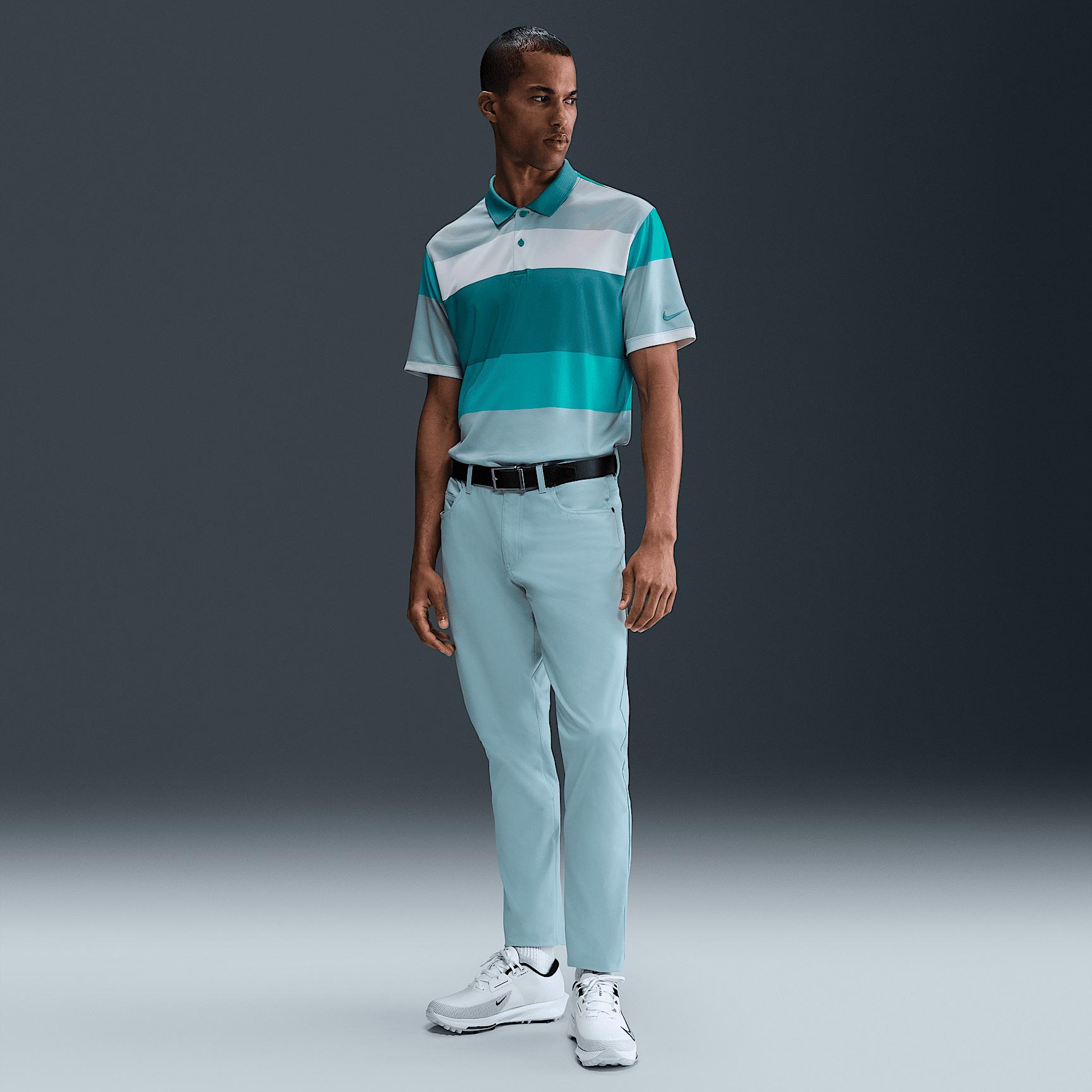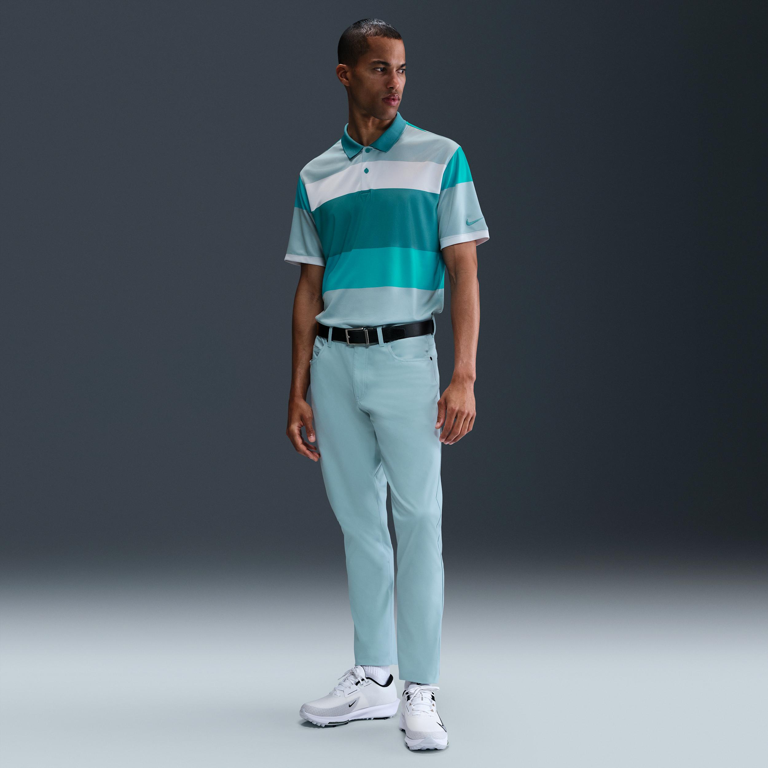 Tailored for golf, the Victory+ polo is made with smooth, lightweight knit that helps you swing with ease. Nike Dri-FIT technology moves sweat away from your skin for quicker evaporation, helping you stay dry and comfortable. Its shaped collar, 2-button placket and classic fit deliver a polished polo look. Benefits:Soft knit material feels lightweight and breathable. Ribbed collar keeps its shape and structure for the classic polo look all day long. Product Details:Embroidered Swoosh logo on chest. 100% polyester. Machine wash. Imported. Style: FZ7452; Color: Mineral Teal/Mineral Teal/Mineral Teal; Size: S; Gender: Male; Age Group: Adult | Nike Victory+ Mens Dri-FIT Golf Polo in Green, Size: Small | FZ7452-379
